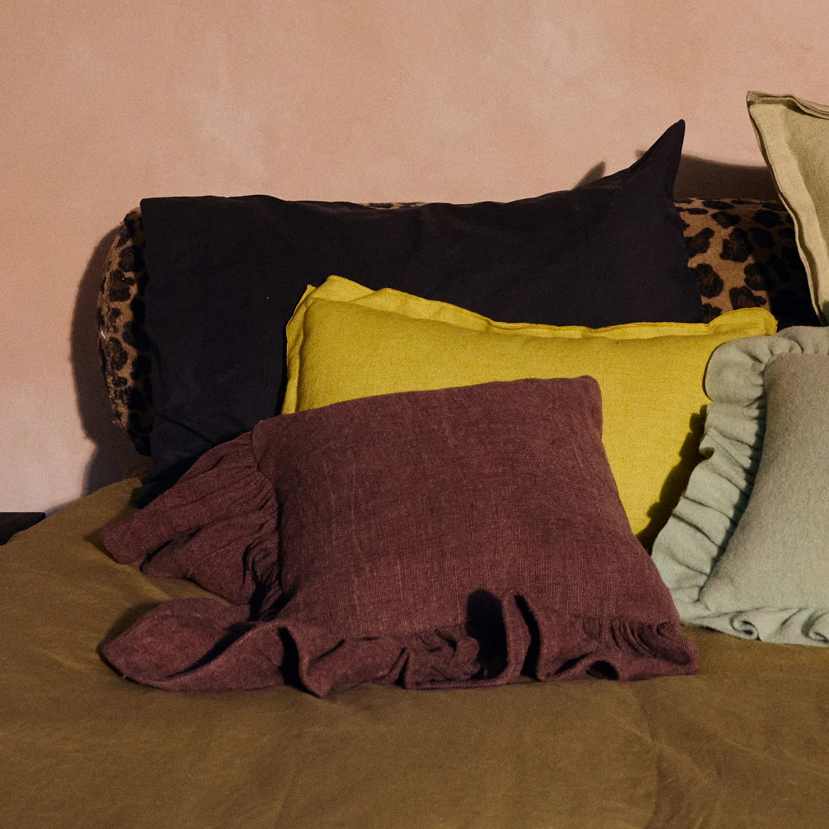 Het ruchekussen combineert zacht katoen met een speelse, ruche rand die het kussen zowel een decoratieve als ontspannen look geeft. De zachte details brengen beweging en zachtheid in de kamer en voegen een subtiele, vintage-geïnspireerde toets toe aan moderne interieurs. Het kussen past perfect in verschillende interieurstijlen en creëert een aangename sfeer die zowel gezellig als stijlvol is.