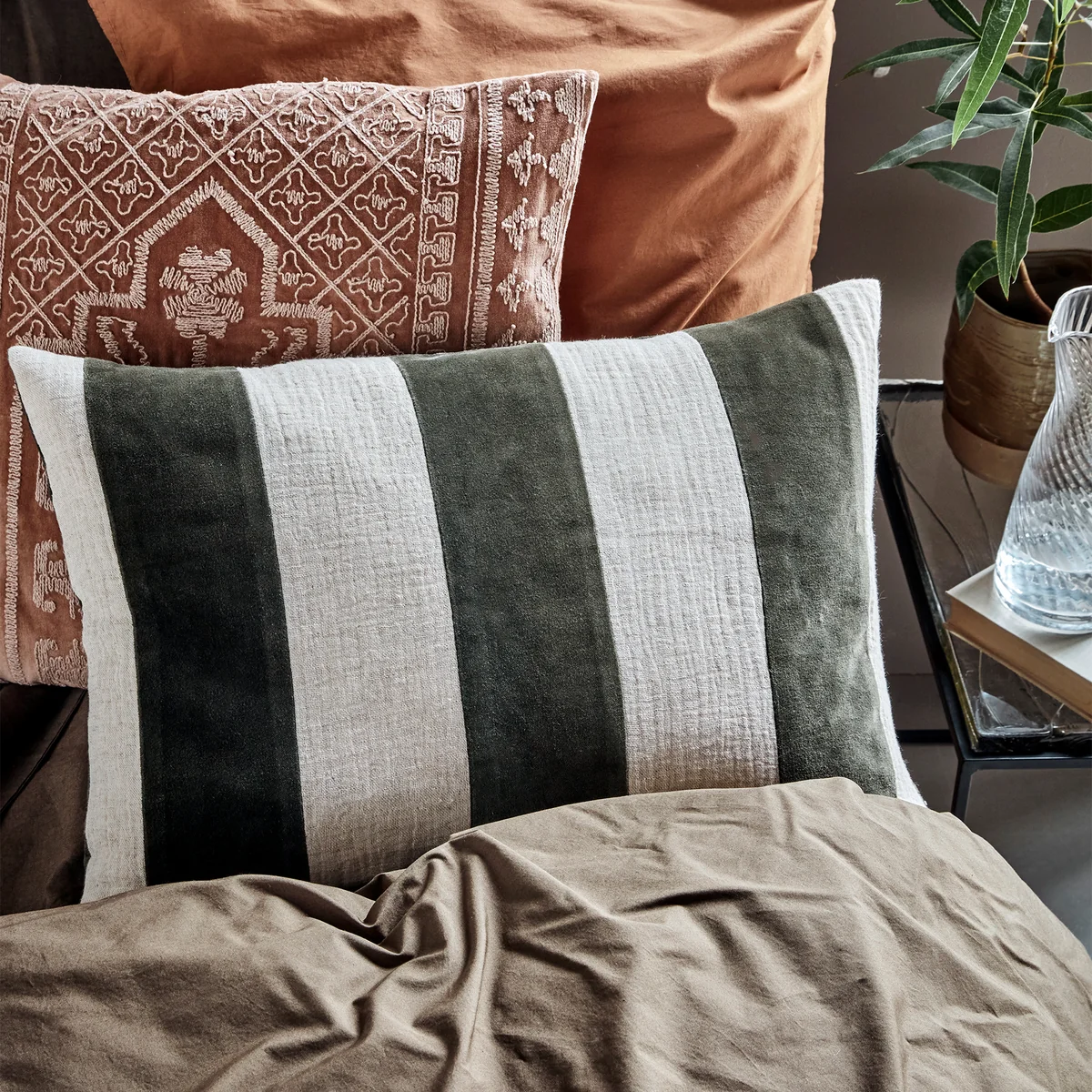 House Doctor De Sono kussenhoes van brengt een perfecte combinatie van stijl en comfort in huis. De geraffineerde mix van zacht katoenfluweel en natuurlijk linnen creëert een luxueus gevoel dat je leefruimte naar een nieuw niveau tilt. De brede strepen en het verfijnde ontwerp voegen een modern tintje toe, terwijl de handgemaakte kwaliteit en de praktische ritssluiting zorgen voor duurzaamheid en gebruiksgemak. Dit stijlvolle accessoire maakt je bank niet alleen comfortabeler, maar ook een echte blikvanger.