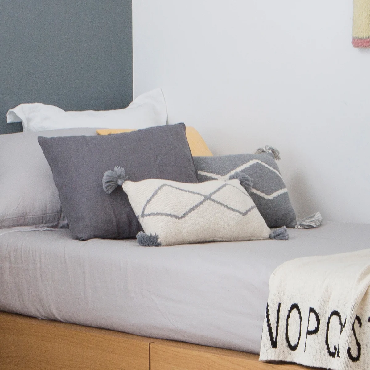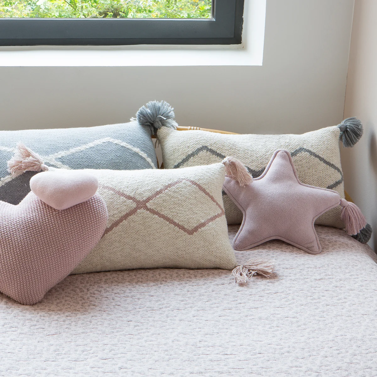 Gebreid oosters kussen met kwastjes