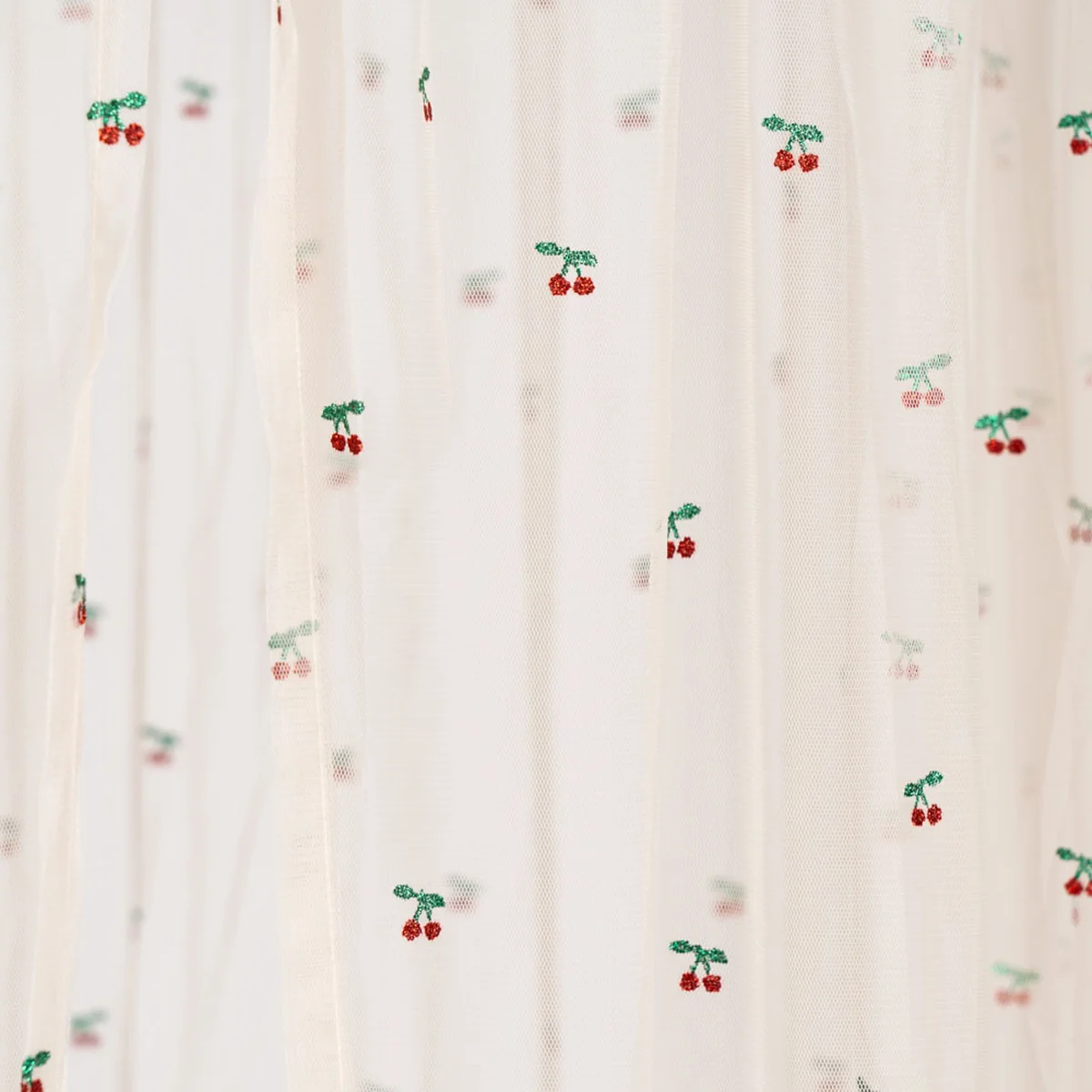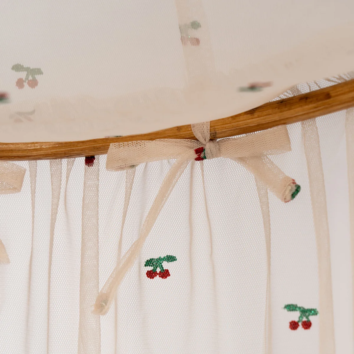 De bedhemel geeft het slaapgedeelte een rustgevende en dromerige sfeer. Met een vleugje kersenglitter magie wordt de kinderkamer omgetoverd tot een magische oase van welzijn - perfect voor zoete dromen.