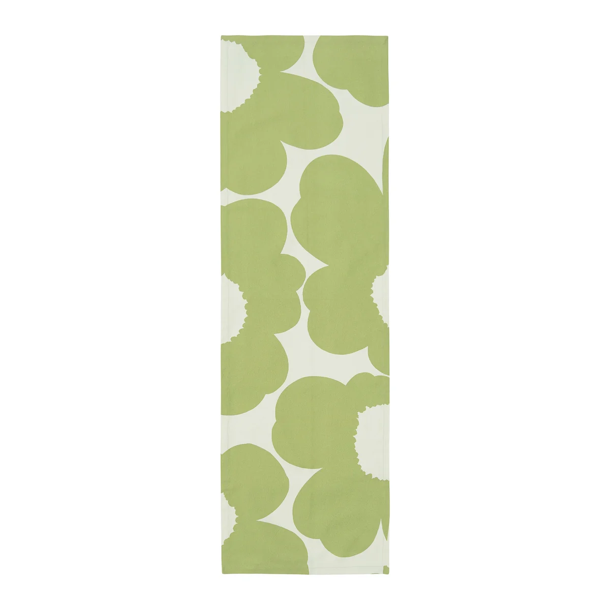 Ongebleekte stoffen en gerecyclede vezels geven elke tafelloper een natuurlijk, levendig oppervlak. Kleine kleurvariaties en nuances maken elk stuk uniek. Het Unikko-patroon, ontworpen door Maija Isola, staat vandaag de dag nog steeds voor creativiteit en expressieve moed en werd gecreëerd in een tijd waarin bloemmotieven een zeldzaamheid waren op Marimekko .