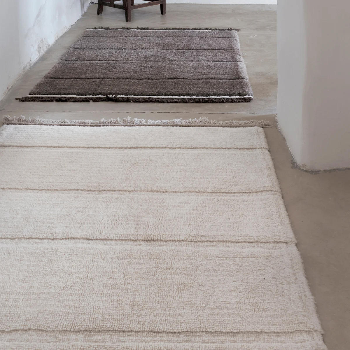 Ervaar de natuurlijke nuances en luxe zachtheid van pluizige wol. Het eenvoudige ontwerp met verschillende poolhoogten en franjes voegt elegant comfort en stijl toe aan je kamer. Dit duurzame en handgemaakte tapijt van RWS-gecertificeerde wol past in elk interieur. Het wasbare tapijt wordt geleverd in een praktische katoenen tas, die ook kan worden gebruikt om op te bergen, en bevat een antislip onderlaag voor een stevige grip.