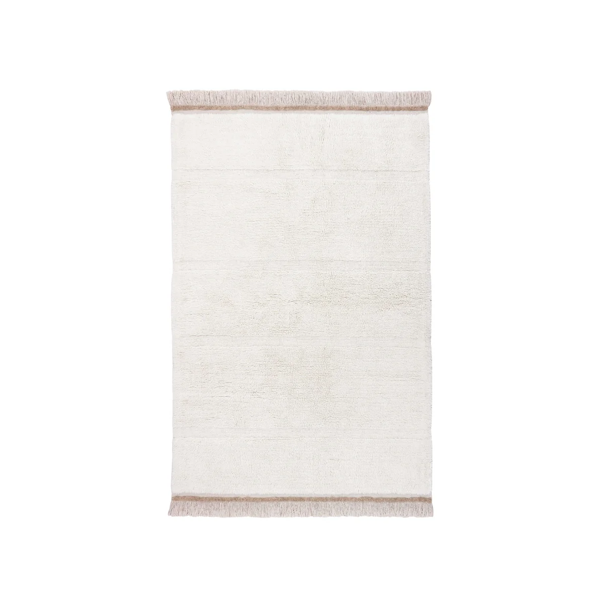Ervaar de natuurlijke nuances en luxe zachtheid van pluizige wol. Het eenvoudige ontwerp met verschillende poolhoogten en franjes voegt elegant comfort en stijl toe aan je kamer. Dit duurzame en handgemaakte tapijt van RWS-gecertificeerde wol past in elk interieur. Het wasbare tapijt wordt geleverd in een praktische katoenen tas, die ook kan worden gebruikt om op te bergen, en bevat een antislip onderlaag voor een stevige grip.