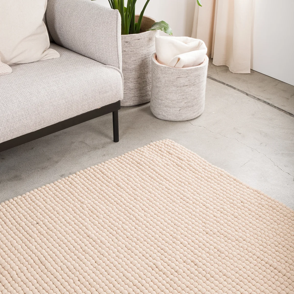 Het rechthoekige Levi vilten boltapijt van myfelt combineert modern design met traditioneel vakmanschap. Het tapijt is gemaakt van Nieuw-Zeelandse schapenwol van hoge kwaliteit en wordt gekenmerkt door zijn unieke gevoel en slijtvaste kwaliteit. De zorgvuldig handgemaakte vilten ballen zijn gerangschikt in een harmonieus kleurenspectrum, waardoor het vloerkleed niet alleen een blikvanger is, maar ook een gezellig element voor elke kamer. Het gebruik van natuurlijke materialen zorgt niet alleen voor een duurzaam product, maar ondersteunt ook een warme sfeer in de woonruimte. Het Levi vilten boltapijt van myfelt belichaamt daarom niet alleen esthetische elegantie, maar ook de waarde van traditioneel vakmanschap en milieuvriendelijkheid.