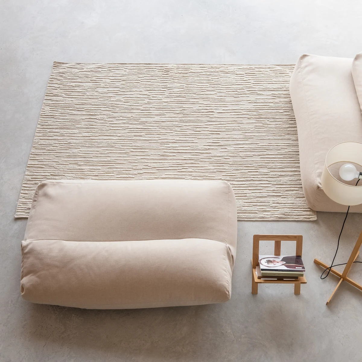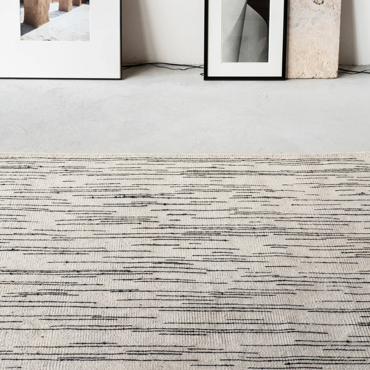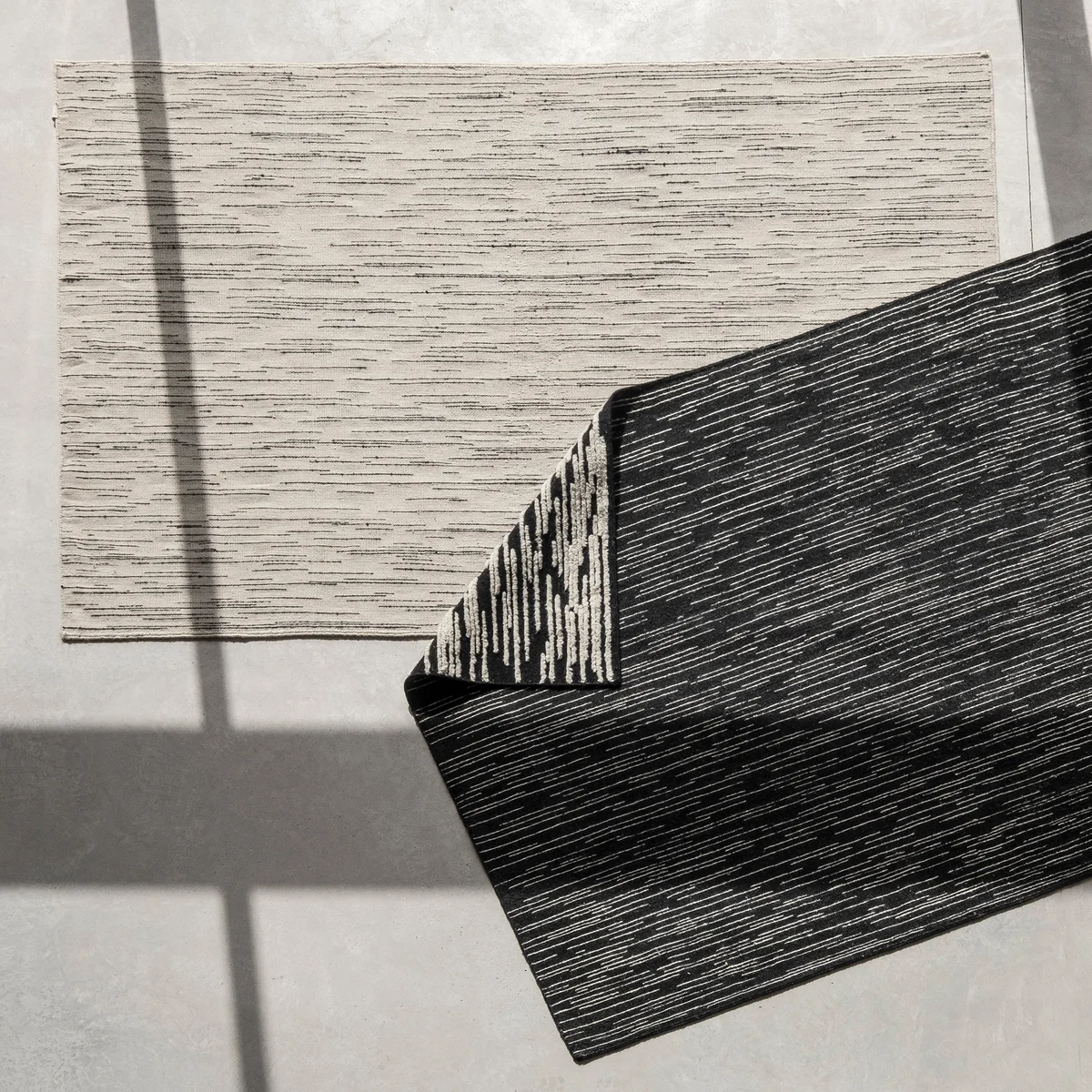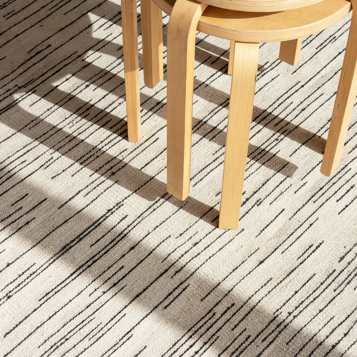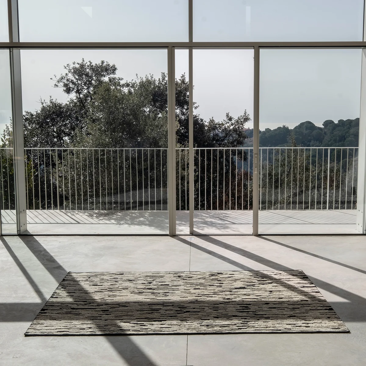 Het Doblecara wollen tapijt van Ronan Bouroullec voor de Spaanse fabrikant nanimarquina weerspiegelt de geest van geometrie. De subtiele, onderbroken strepen creëren een vage, bijna bewegende stip in het oog van de toeschouwer.