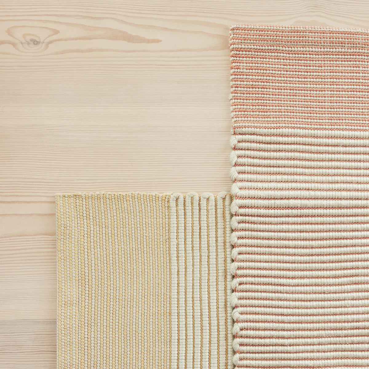 Deze stukken zijn afgeleid van het klosje dat elke draad netjes oprolt en worden vakkundig geweven door bekwame Indiase ambachtslieden. In tegenstelling tot conventionele wol wordt Läufer uitsluitend gemaakt van gerecycled plastic dat is omgezet in een zacht maar stevig PET-garen.