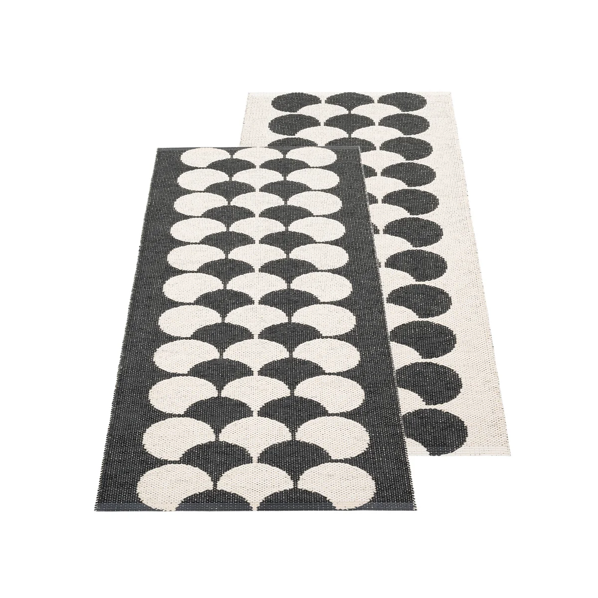 Het patroon van Poppy doet denken aan de delicate details van een papaverzaadpeul. Het is een klassiek Pappelina tapijt met een herhalend design. Het tapijt is bijzonder UV-bestendig en geschikt voor zowel binnen als buiten.