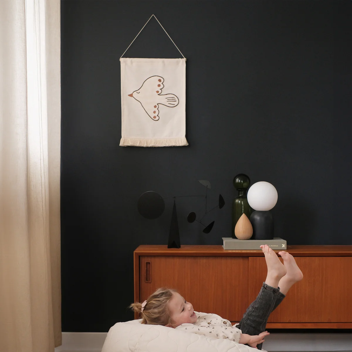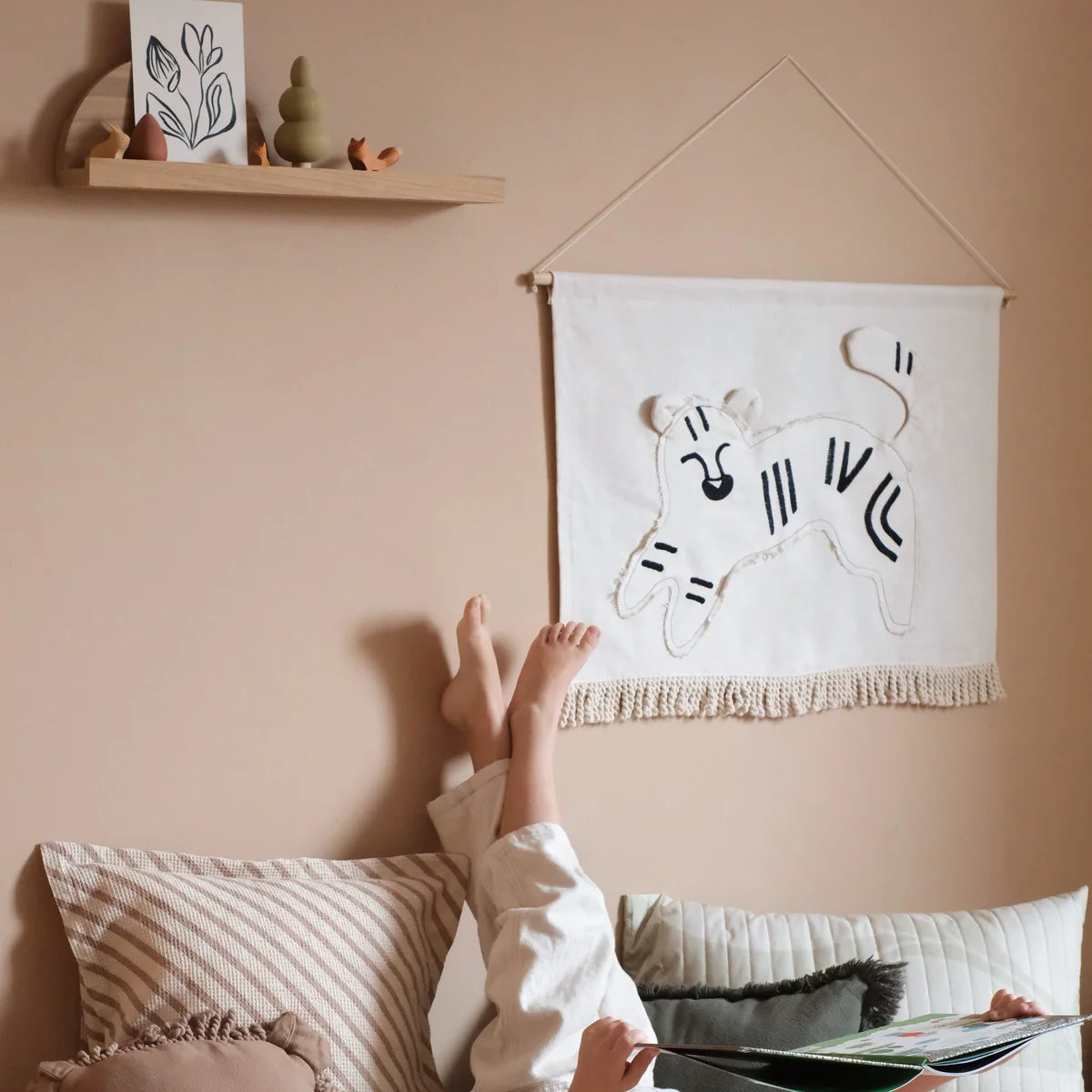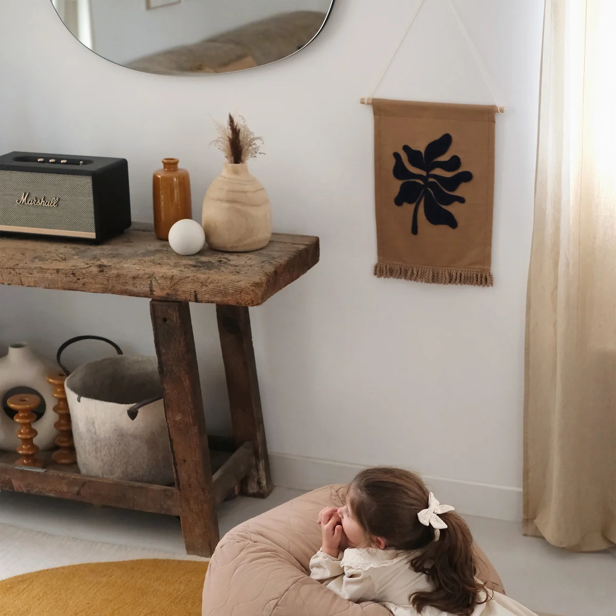Het wandkleed Landscape van Nobodinoz belichaamt minimalisme met een vleugje poëzie. Perfect voor elke hoek van het huis, van de woonkamer tot de kinderkamer. "Landscape is de wooncollectie van Nobodinoz die gedurfde ontwerpen en diverse texturen combineert voor een eigentijdse, rustige esthetiek. Emblematische producten van het merk worden geherinterpreteerd met natuurlijke kleuren en patronen geïnspireerd door rustige landschappen.