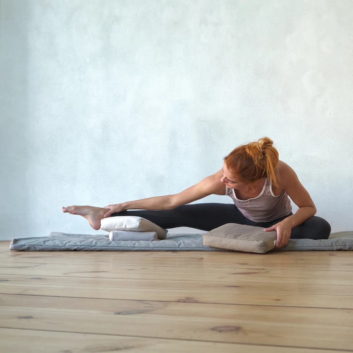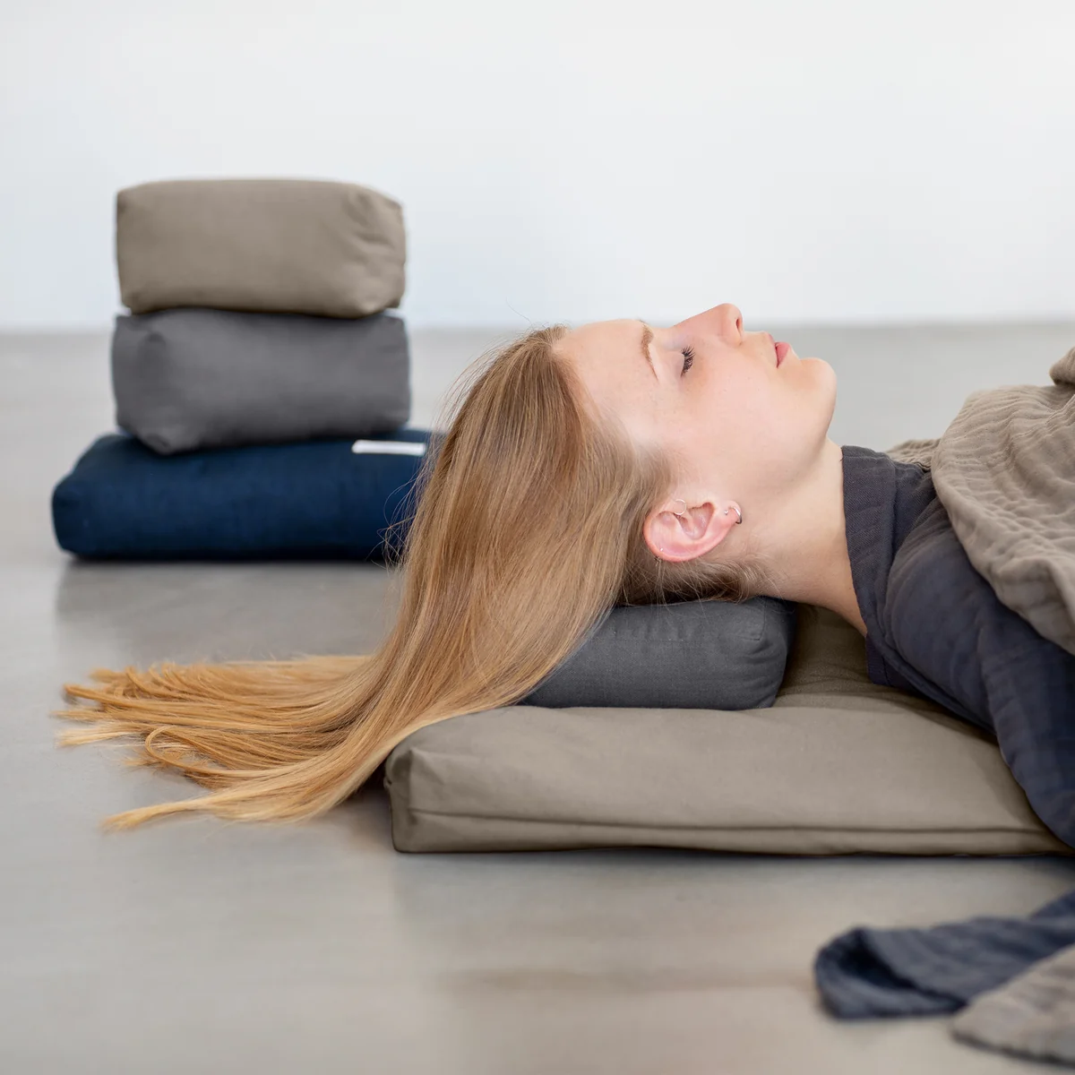 De hoes van de meditatiemat is gemaakt van biologisch katoen. De mat is prachtig te combineren met het bijpassende meditatieblok en/of het ontspannings- en meditatiekussen .