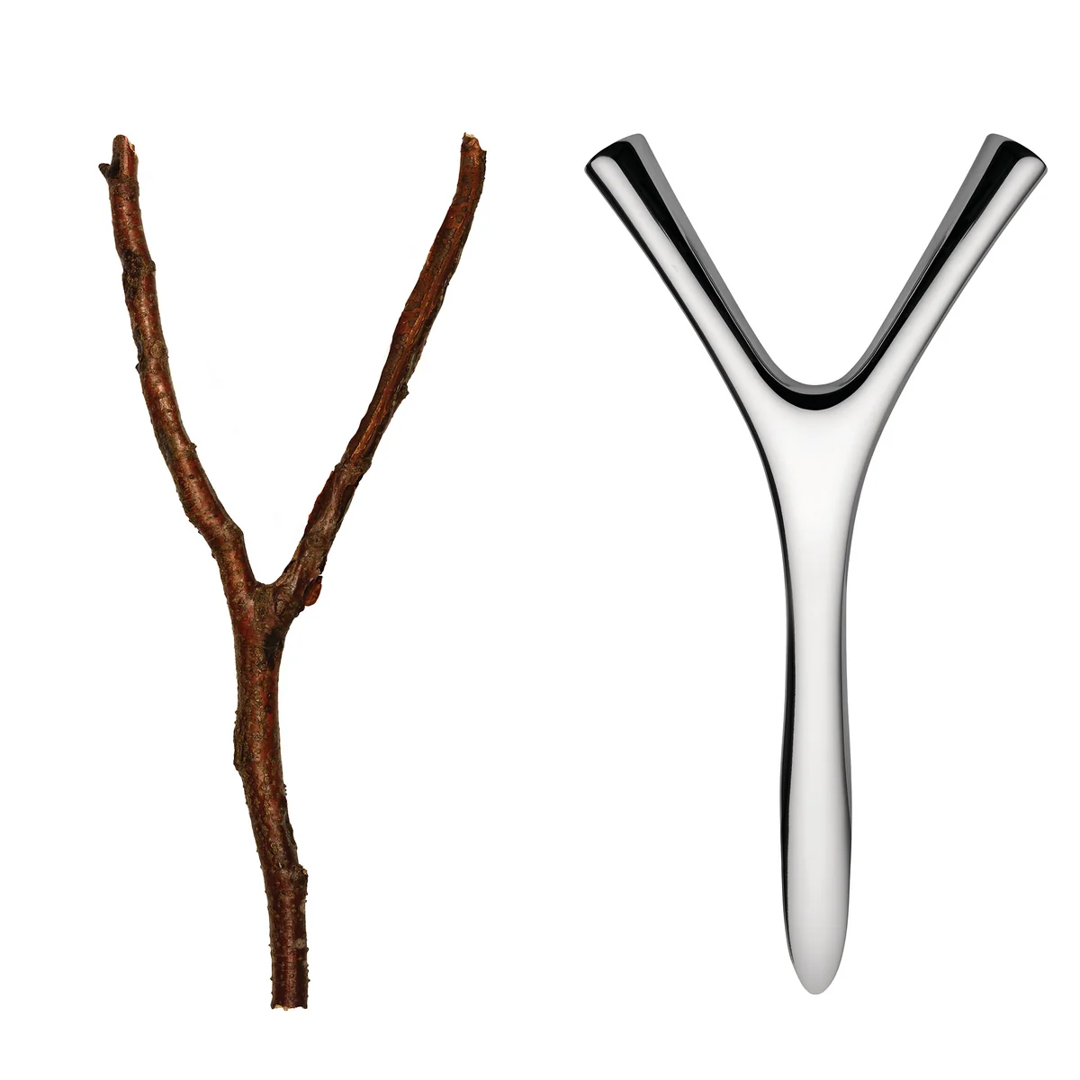 De Virgula Divina flesopener is ontworpen door Frédéric Gooris. "Virgula Divina" is Latijn en vertaalt zich in wichelroede. Gelukkige jagers zochten vroeger naar water en andere hulpbronnen met behulp van het Y-vormige instrument. Nu helpt de wichelroede niet alleen om het water te vinden, maar opent ook de fles waarin het gevonden kan worden.