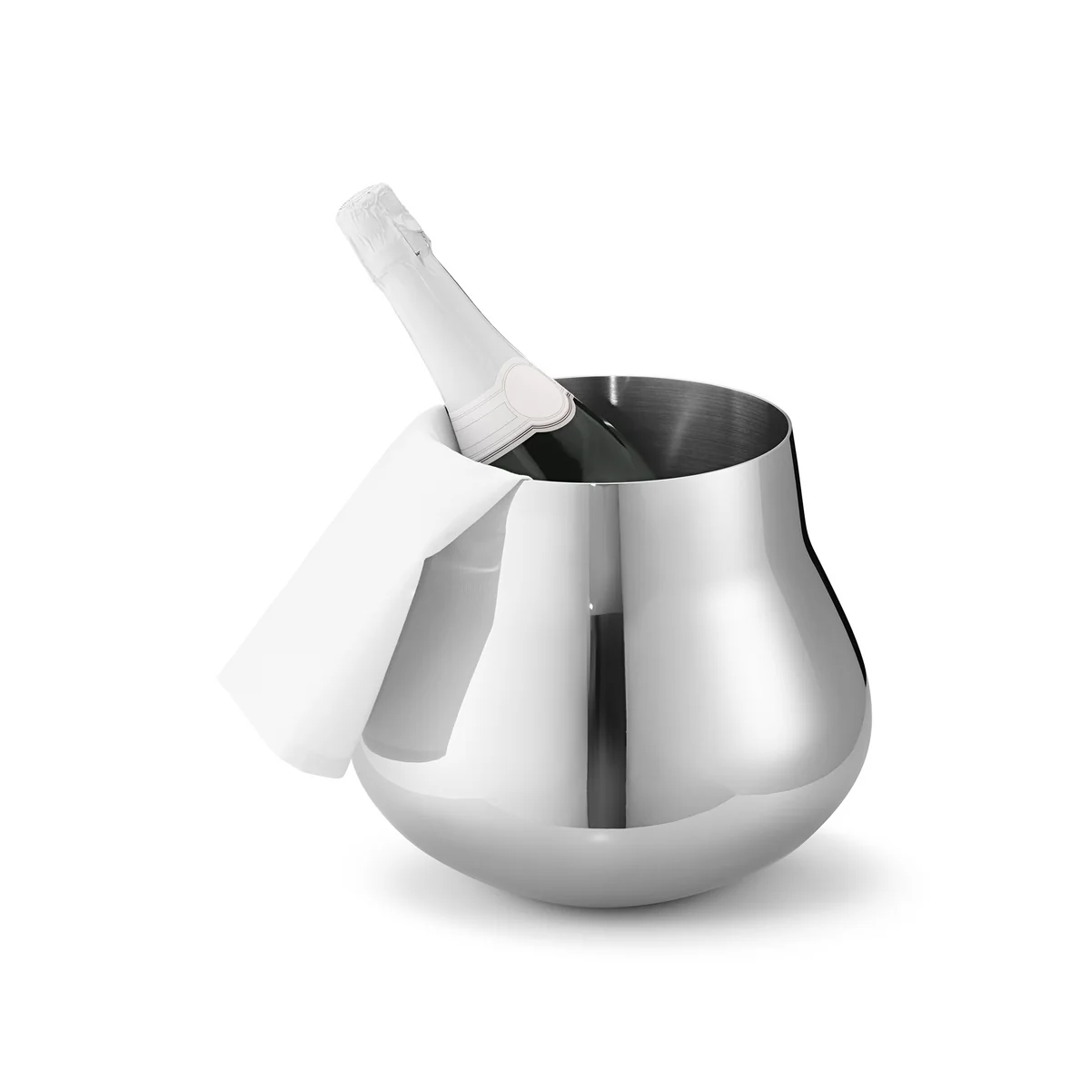 De koeler van de Sky serie is gemaakt van hoogglans gepolijst roestvrij staal. Een wit servet is inbegrepen.
