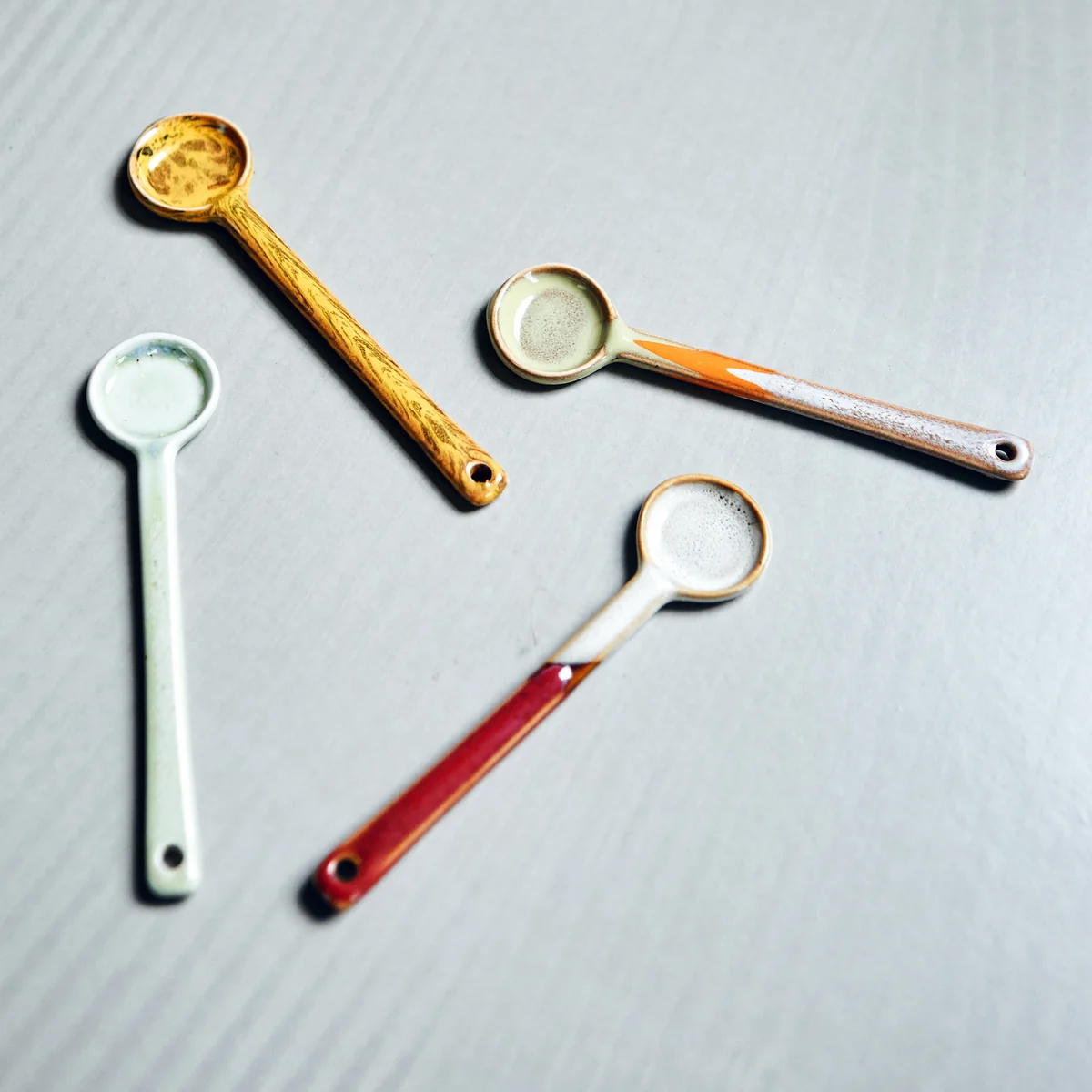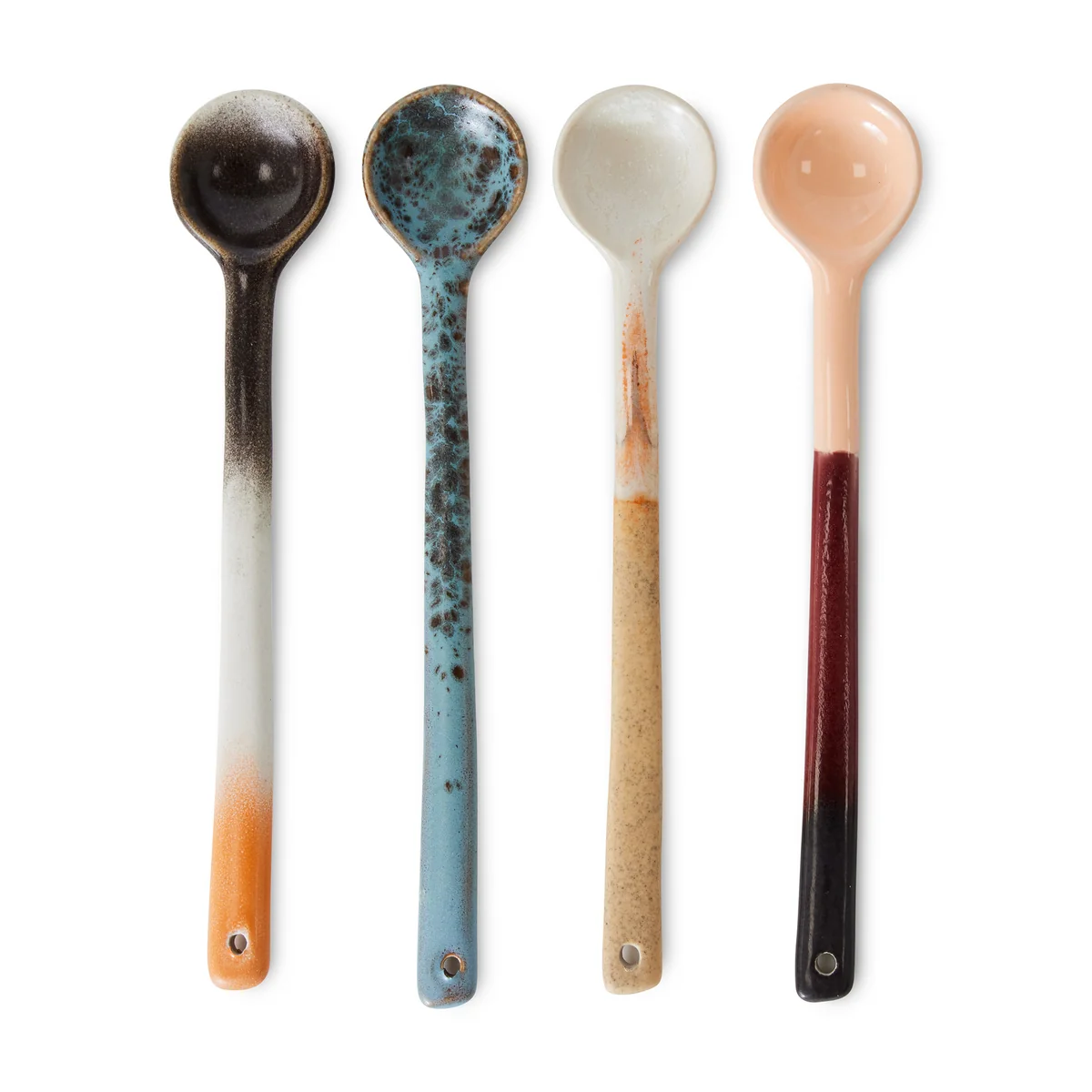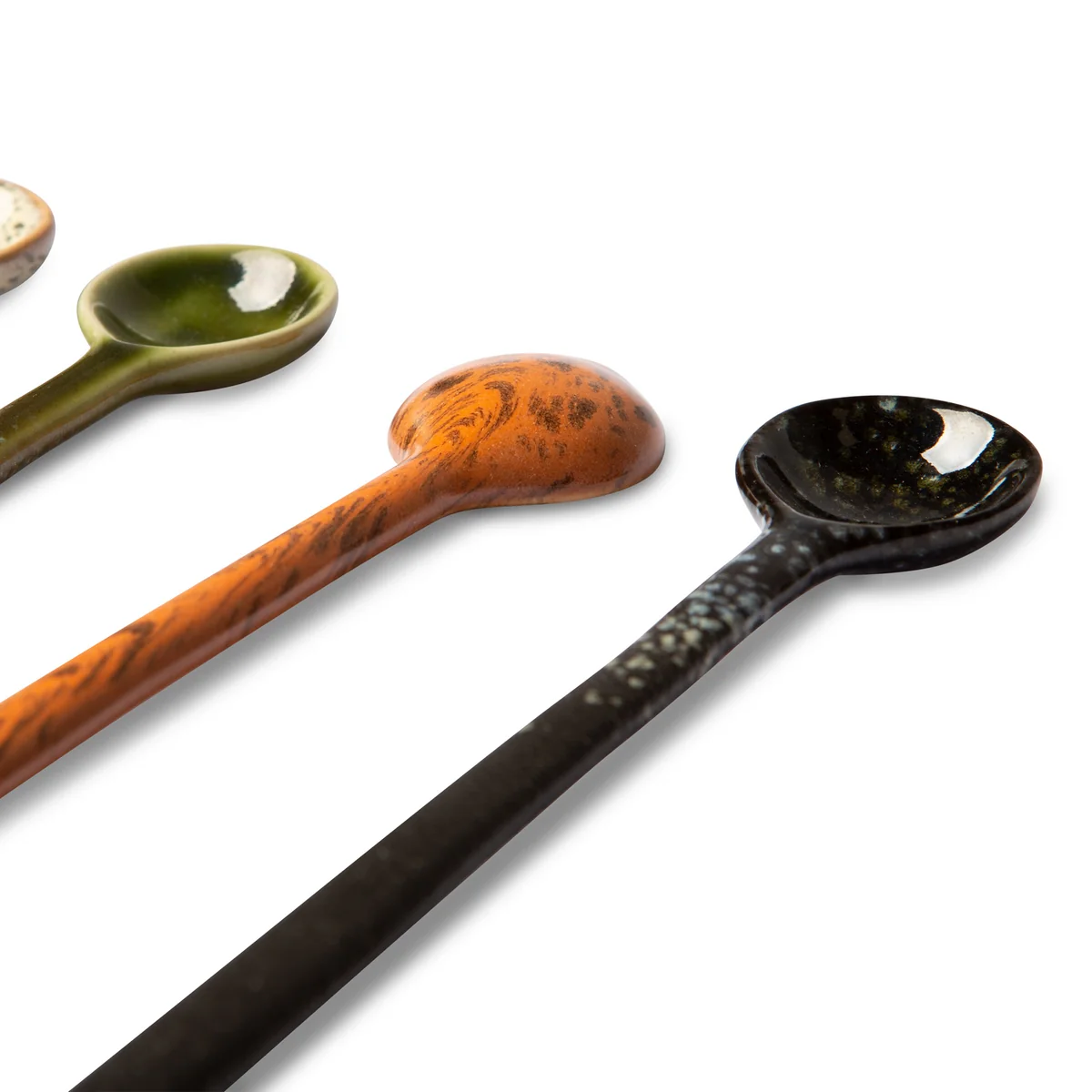 De op keramiek gebaseerde 70's collectie van HKliving presenteert als belangrijk onderdeel: een serie verschillende kleurrijke lepels gemaakt van reactief geglazuurd steengoed. De lepels zijn ideaal voor het serveren van koffie of kleine desserts, zoals crème brûlée of rijstpudding. HKliving zorgt ervoor dat voor elke gelegenheid de juiste lepel beschikbaar is.