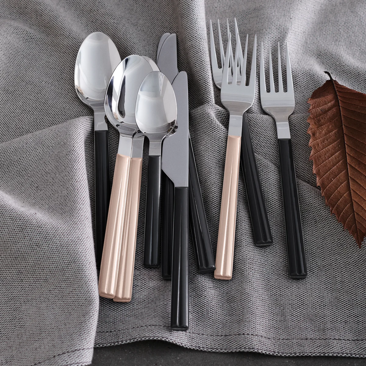 Minimalistisch bestek van roestvrij staal en kunststof op biologische basis