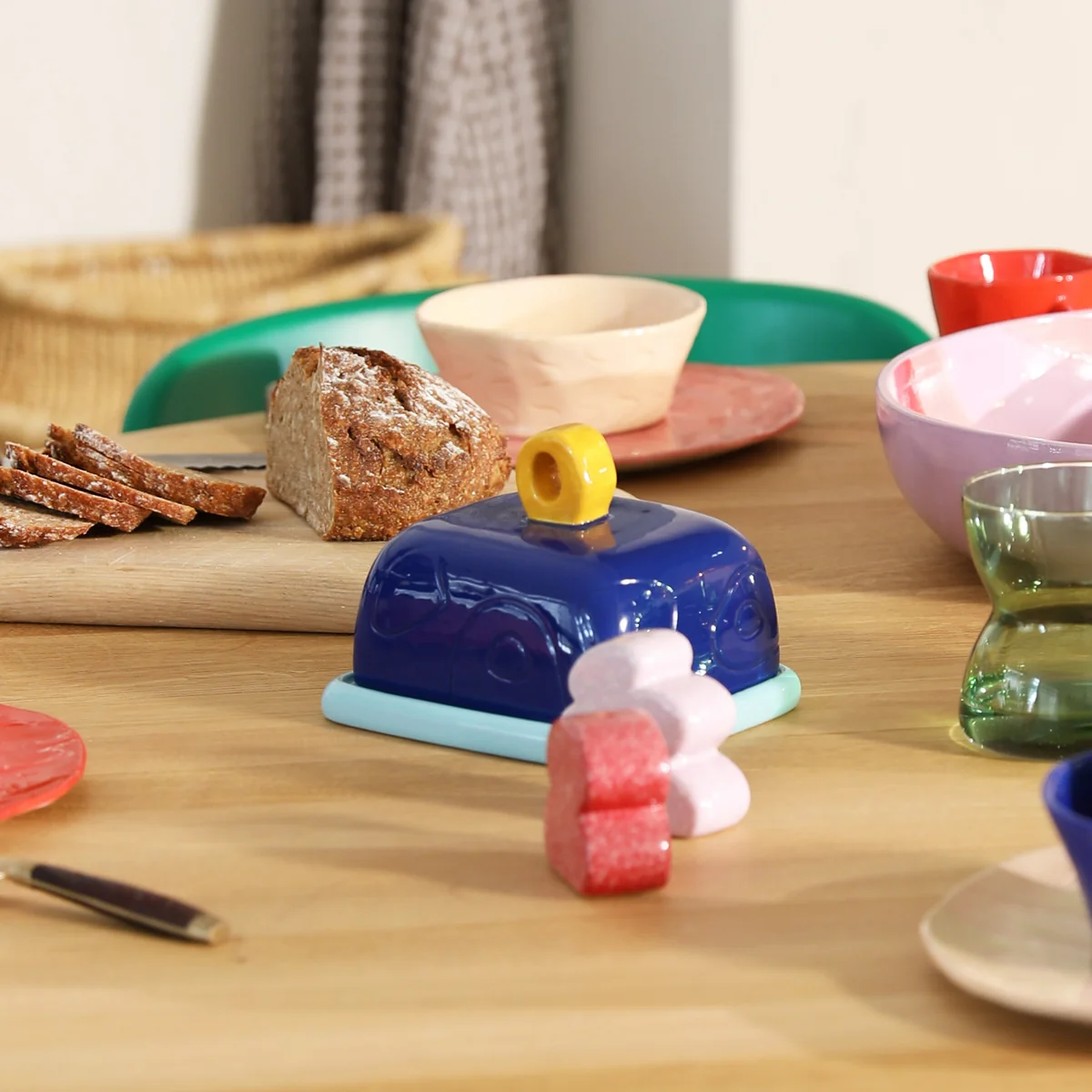Dit opvallende botervlootje brengt een creatieve toets op tafel met zijn contrasterende kleuren en abstracte vormen. Het houdt verse boter koel en dient ook als decoratief hoogtepunt voor elke tafelsetting. Perfect voor dagelijks gebruik of speciale gelegenheden - een stijlvolle combinatie van functionaliteit en modern design.