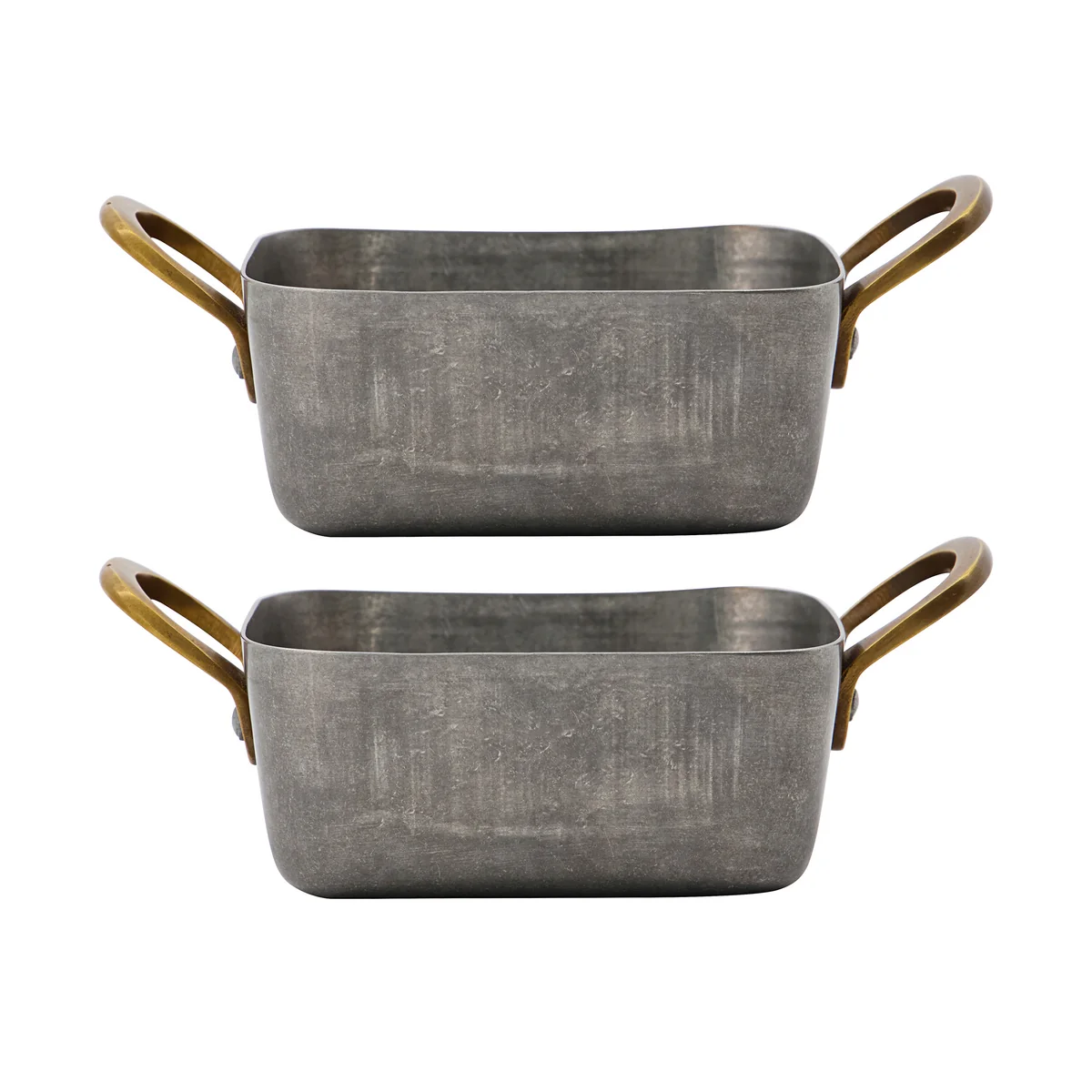 Met deze set van twee Presentation mini ovenschalen van Nicolas Vahé kun je gasten een diner serveren om nooit te vergeten. Ze zijn gemaakt van roestvrij staal en hebben koperen handgrepen voor een casual maar stijlvolle look. Ze kunnen worden gebruikt om heerlijke gerechten te serveren op een rustieke manier in restaurantstijl.