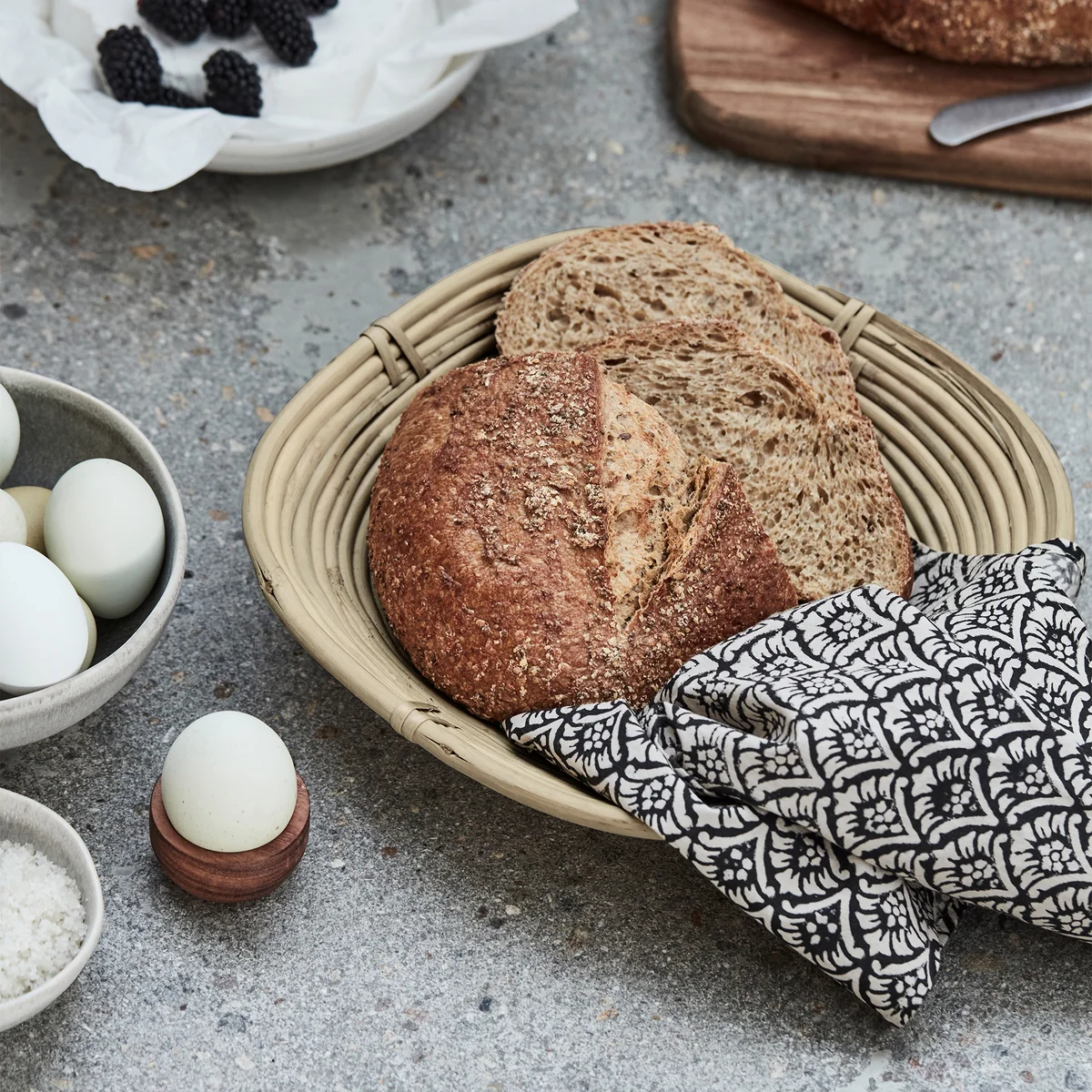 De conische opbergmand van handgeweven rotan en bamboe combineert functionaliteit en esthetiek. Als decoratieve opbergoplossing of als stijlvolle broodmand, de voedselveilige mand is perfect voor droog voedsel en brengt een vleugje natuur in je keuken. Een charmante en praktische toevoeging aan elk keukeninterieur.