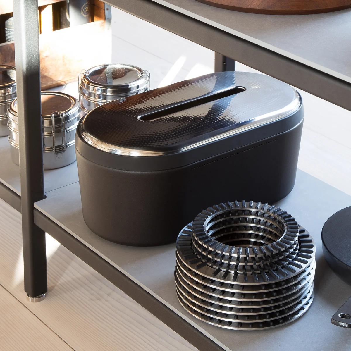 Vipp Vipp De 270 broodtrommel maakt deel uit van het assortiment Keukengereedschap van . Met deze broodtrommel zet het Deense bedrijf zijn traditie van functioneel design voort.