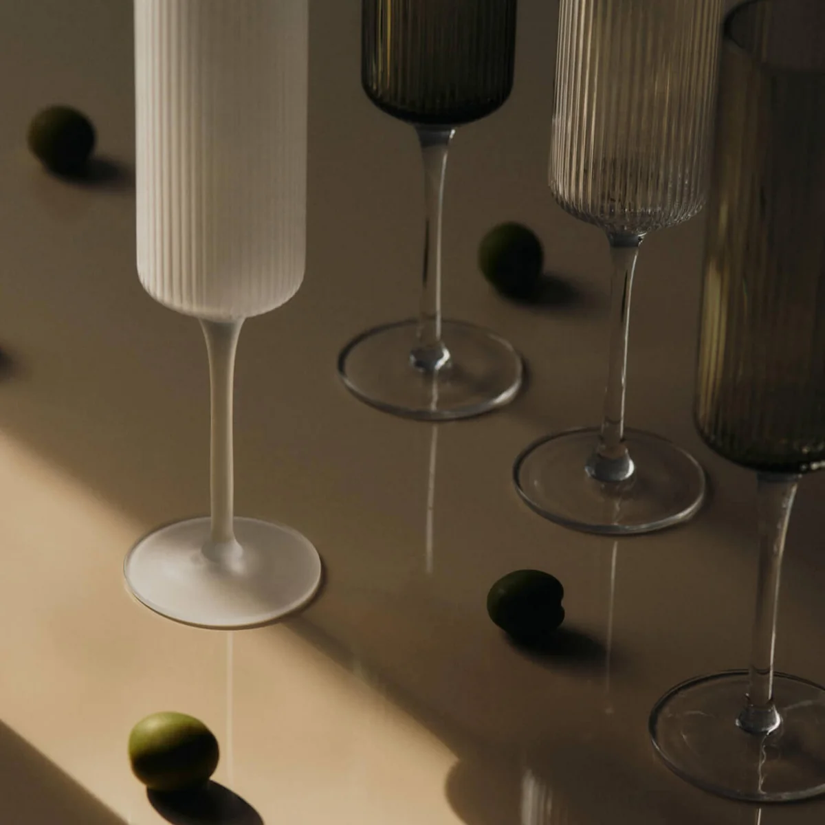 De Ripple champagneglas van Ferm Living breidt de populaire Ripple -serie uit met een elegant glas voor speciale momenten. De mondgeblazen fluit wordt in een mal geblazen en wordt gekenmerkt door het kenmerkende, fijn gecanneleerde oppervlak, dat het glas dynamiek en structuur geeft. Het hoge, slanke silhouet helpt de bubbels opstijgen en behoudt de smaak van mousserende wijnen optimaal. Voor een feestelijke receptie of een stijlvolle toast - dit glas combineert functie en design op een eigentijdse manier.