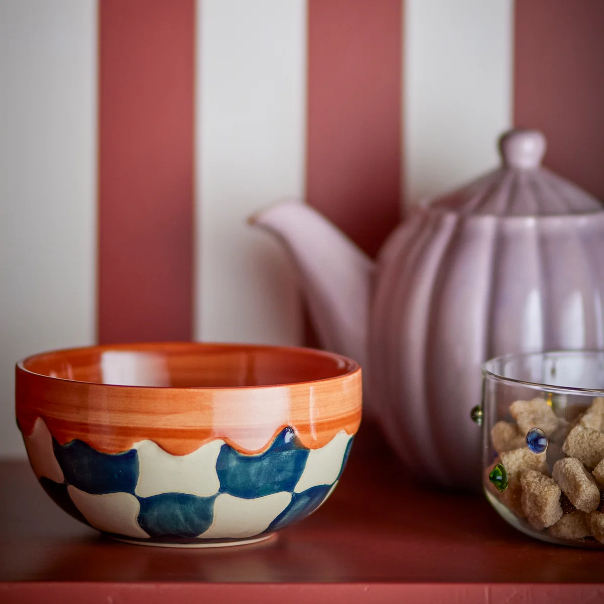 De Check kom van Bloomingville brengt handgemaakte kunst en modern design op tafel. Hij is gemaakt van hoogwaardig steengoed en maakt indruk met een grafisch patroon in donkerblauw, beige en warm terracotta. Elke kom is met de hand beschilderd, waardoor subtiele verschillen in patroon en kleurintensiteit ontstaan die elke kom echt uniek maken.