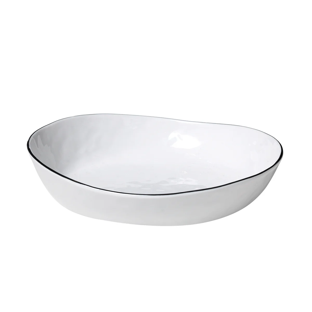 De Salt kom van Broste Copenhagen is een stijlvolle manier om te genieten van je ochtend muesli, een warme soep of een frisse salade. De kom maakt deel uit van de Salt collectie en wordt gekenmerkt door klassieke vormen met elegantie en scherpte. Het witte glazuur wordt aangevuld met handgeschilderde zwarte randen. Het glazuur krijgt zijn kenmerkende textuur en kleur tijdens het bakproces, waardoor elk servies uniek is.