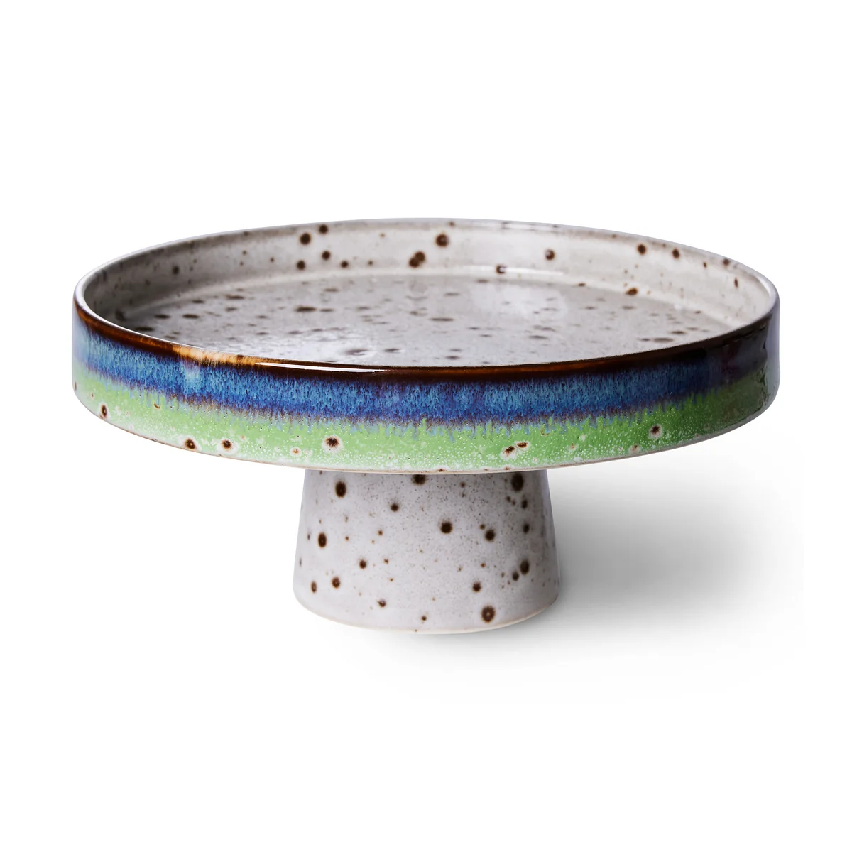 De 70's kom met voet van HKliving verdient een heel bijzondere plaats op het aanrecht. Met een speciaal ontwerp dat verschillende kleuren in elkaar laat overlopen en een speciaal reactief glazuur, komt het hoogwaardige steengoed goed tot zijn recht.