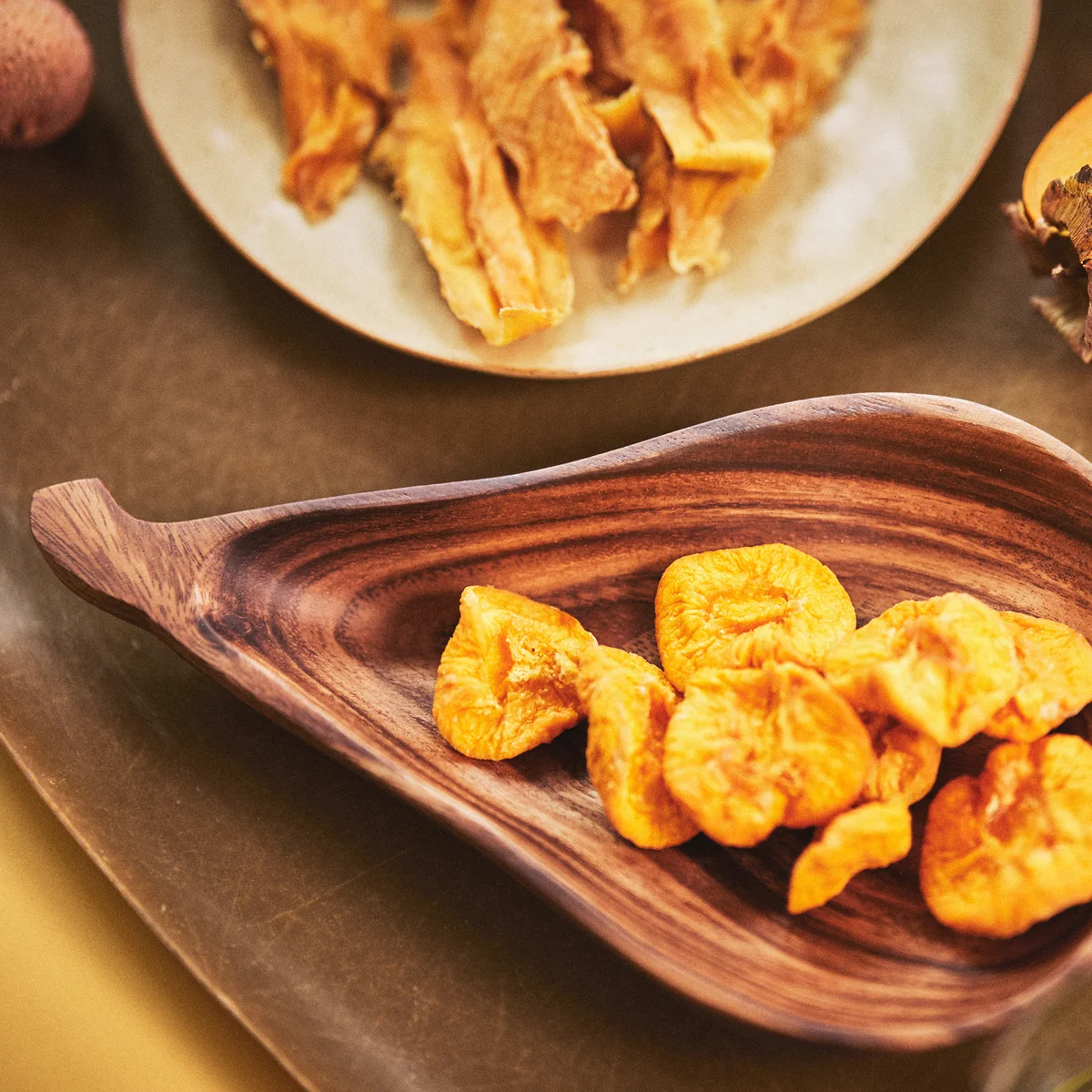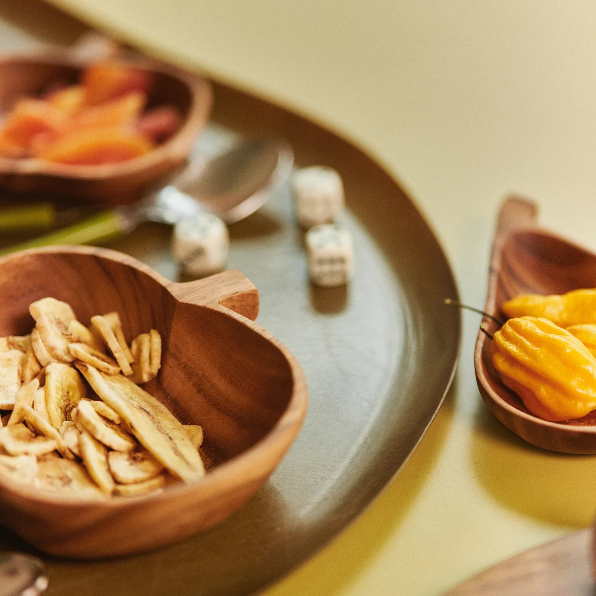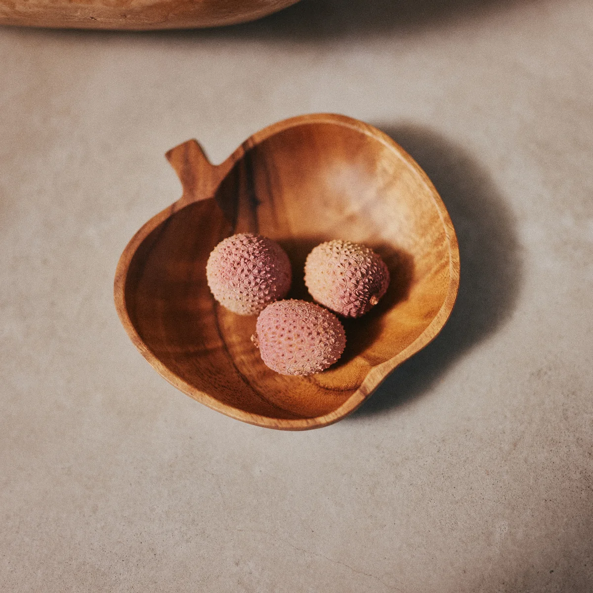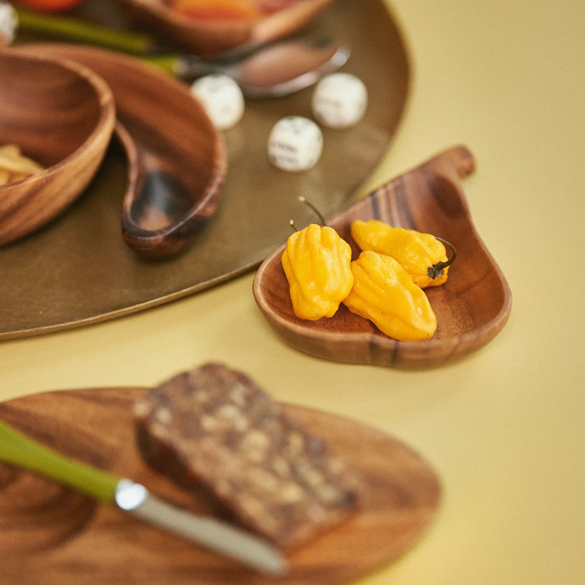 De Acacia schaal van HKliving . Of je nu een ontspannen brunch of een verfijnd diner organiseert, de fruitvormige schalen Acacia fruitvormige schalen vormen de perfecte balans tussen speelsheid en verfijning, een combinatie van nostalgie en moderniteit. Elk stuk is zorgvuldig vervaardigd uit duurzaam acaciahout, geprezen om zijn lange levensduur en unieke nerf. Deze prachtige serviescollectie, waar functionaliteit en vakmanschap elkaar ontmoeten, kan de tafel in een handomdraai opfleuren.