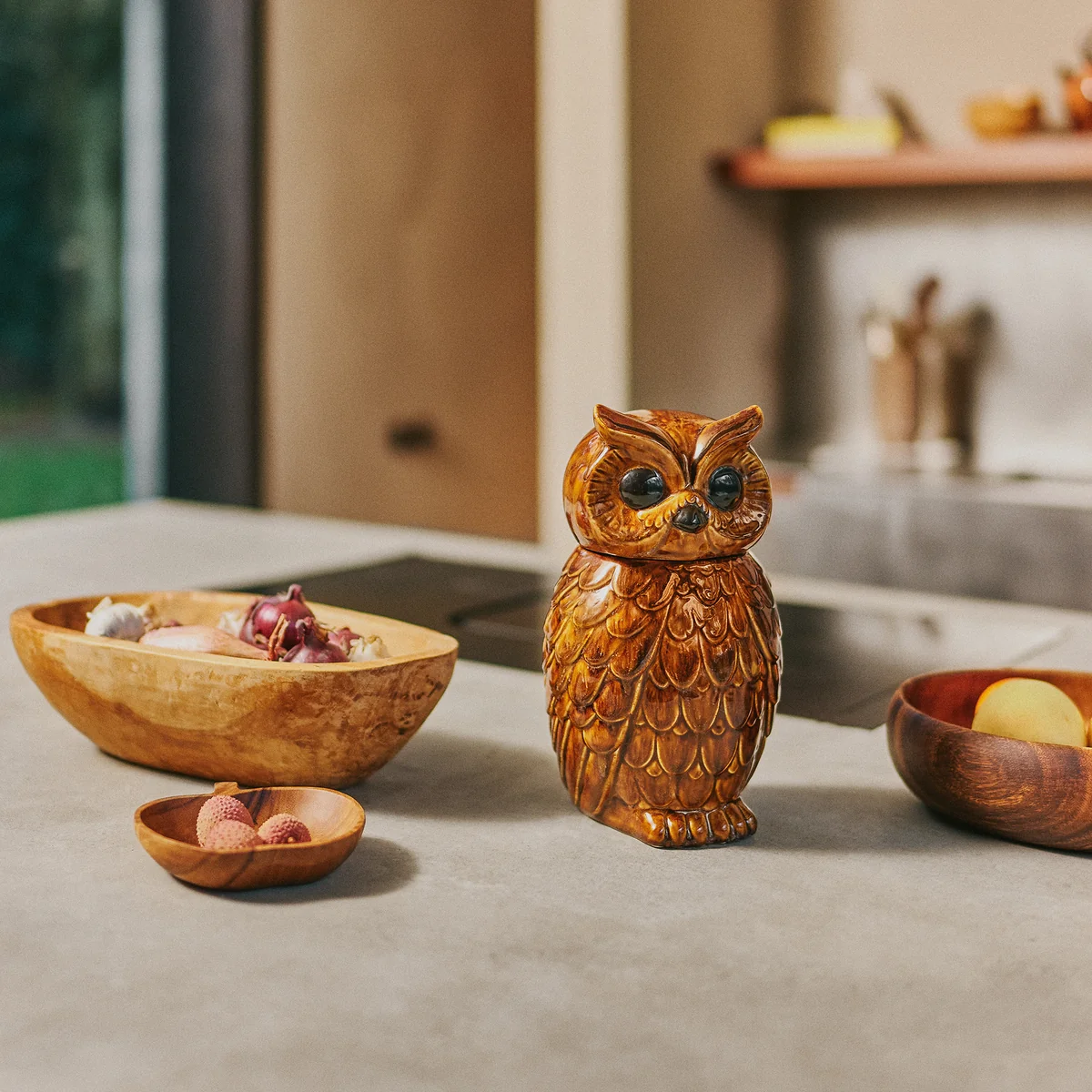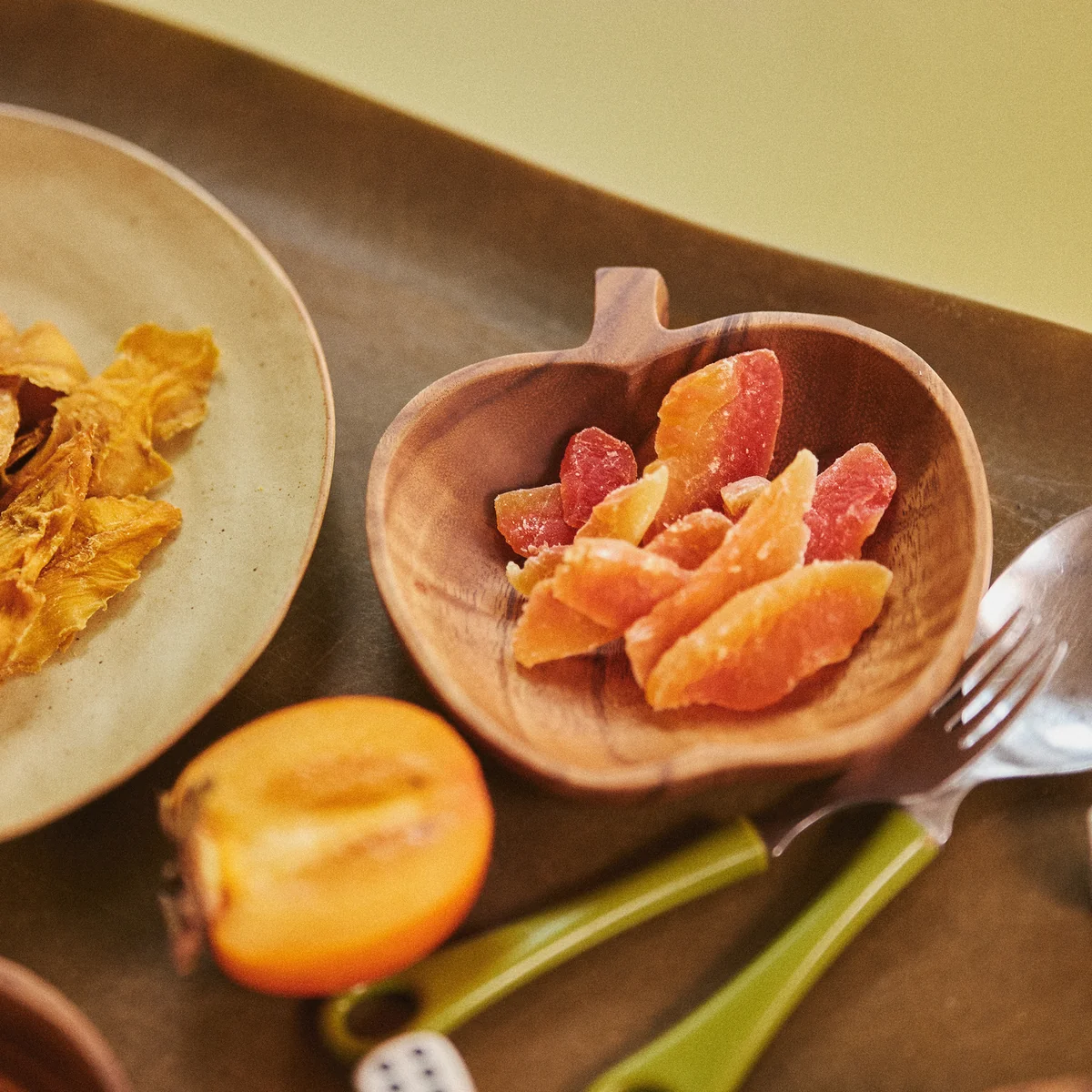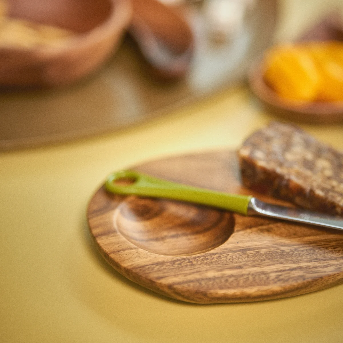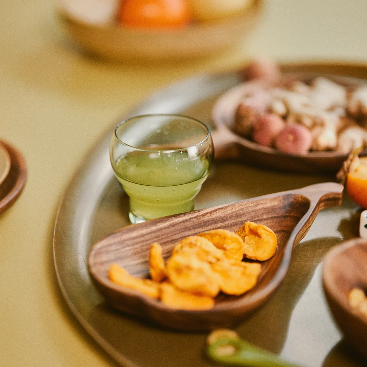 De Acacia schaal van HKliving . Of je nu een ontspannen brunch of een verfijnd diner organiseert, de fruitvormige schalen Acacia fruitvormige schalen vormen de perfecte balans tussen speelsheid en verfijning, een combinatie van nostalgie en moderniteit. Elk stuk is zorgvuldig vervaardigd uit duurzaam acaciahout, geprezen om zijn lange levensduur en unieke nerf. Deze prachtige serviescollectie, waar functionaliteit en vakmanschap elkaar ontmoeten, kan de tafel in een handomdraai opfleuren.