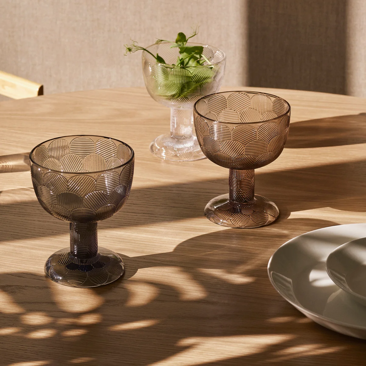 De schaal Miranda met voet van Heikki Orvola voor Iittala overtuigt met een opvallend bladdesign dat een stukje natuur aan elke eettafel brengt. De schaal van geperst glas is ideaal voor het serveren van hapjes en desserts en zelfs zonder inhoud wordt het licht op een prachtige manier in het glas weerkaatst.
