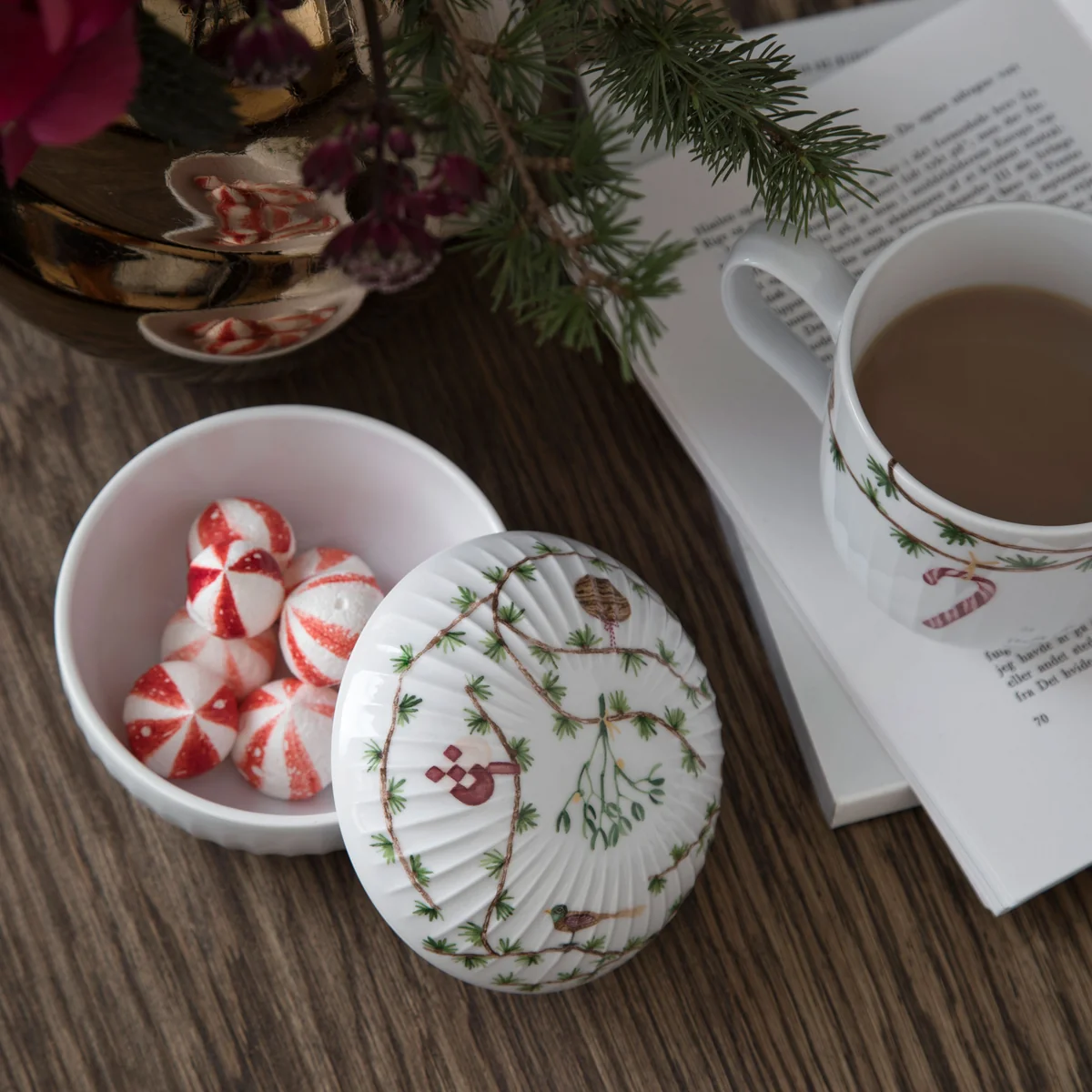 Winterse motieven zoals twijgen, kegels en vogels sieren de bonbonnières, die een klassiek en kerstachtig design creëren. Samen met andere kerstobjecten van Kähler Design kunt u tijdens de kerstdagen een heerlijke sfeervolle sfeer creëren.