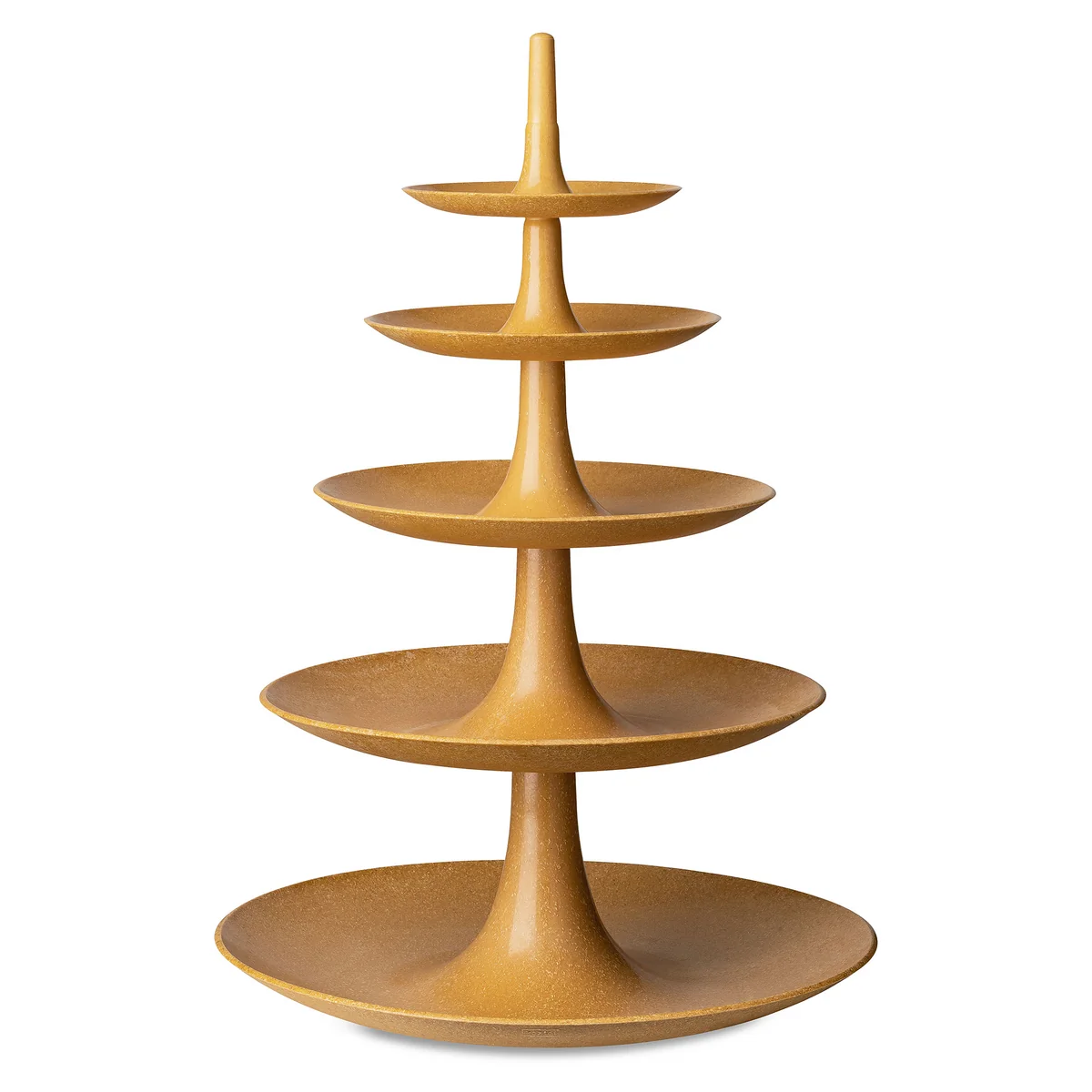 De Babell Etagere Organic van Koziol toont op drie niveaus decoratief fruit, snacks, snoepgoed en nog veel meer. Geplaatst in de keuken of op de eettafel, is de etagère een blikvanger. Voor opslag, kan het Babell kan worden gedemonteerd in zijn elementen en compact in gespiegelde volgorde worden samengesteld.