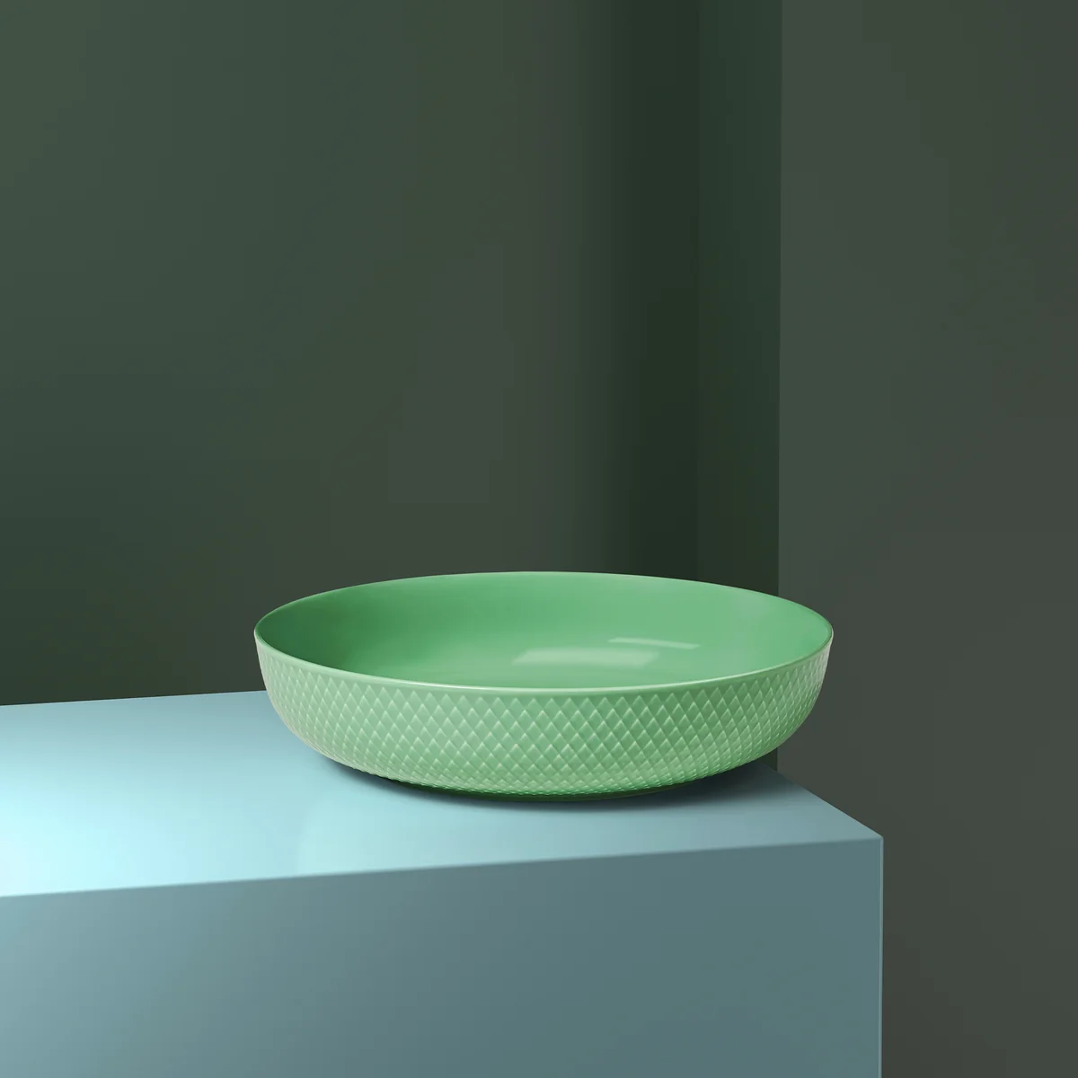 De Rhombe kom is verkrijgbaar in verschillende maten. Afhankelijk van het model kan de kom worden gebruikt voor muesli in de ochtend, voor het serveren van een paar hapjes in de avond, voor heerlijke desserts of als stijlvolle fruitschaal op de keukentafel. Dankzij het tijdloze, eenvoudige ontwerp kan de kom ook perfect worden gecombineerd met andere producten. Rhombe De kom kan ook perfect gecombineerd worden met andere servieselementen in verschillende kleuren en patronen.