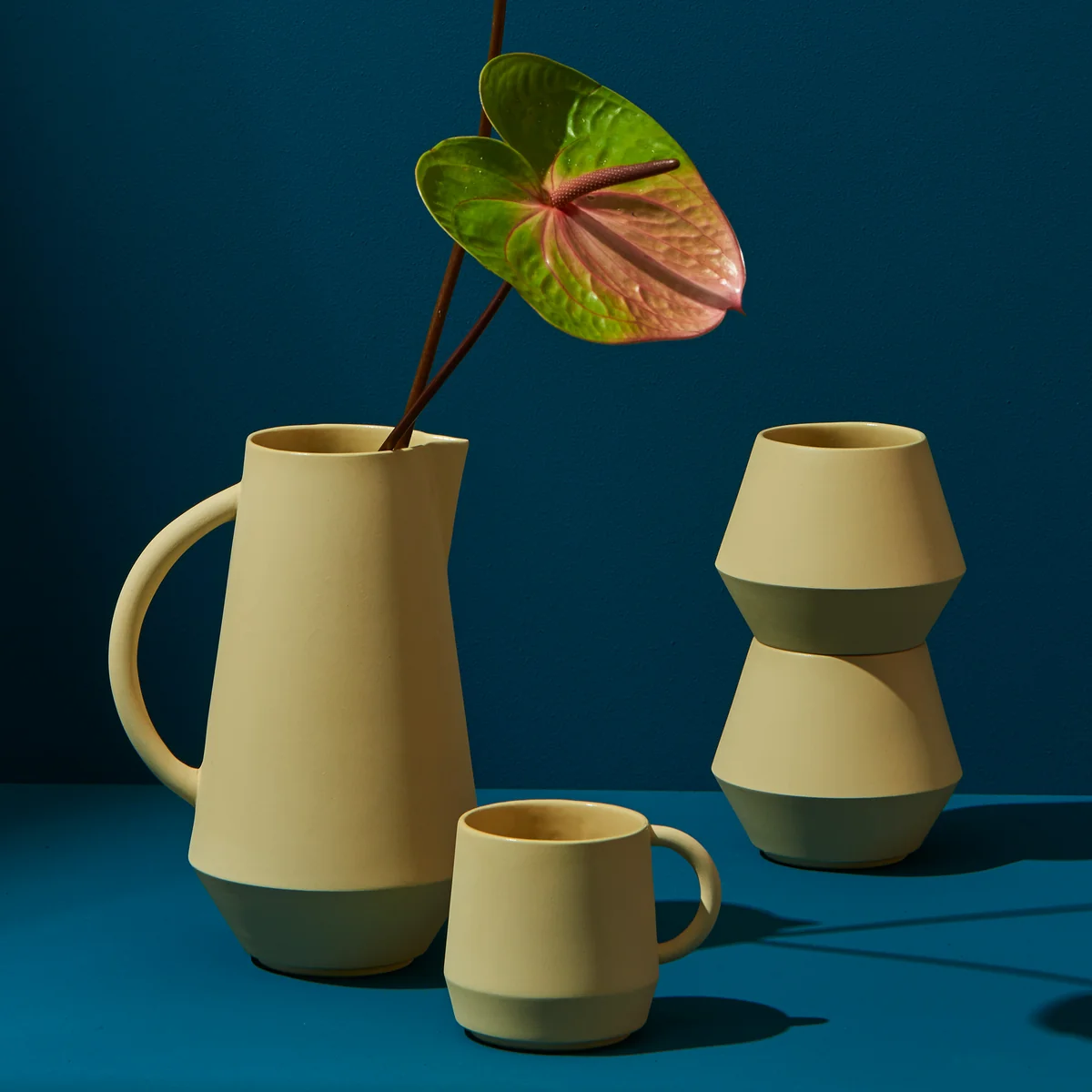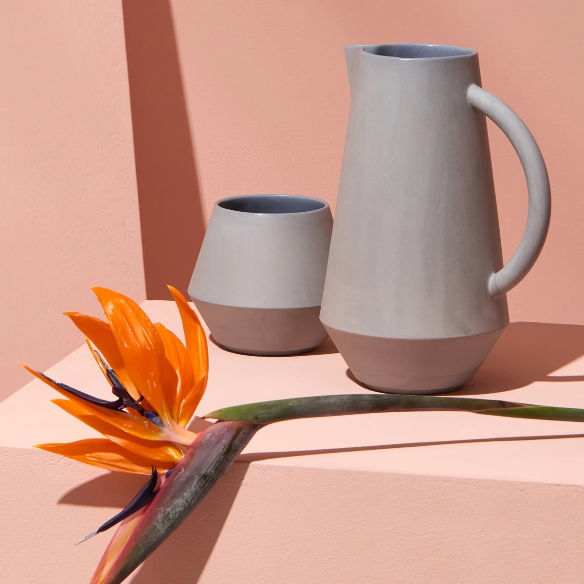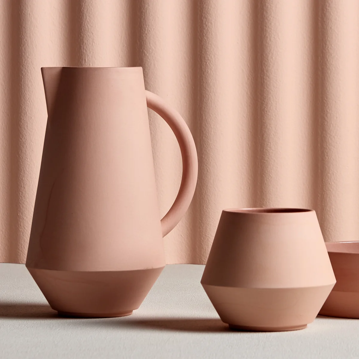 Hij is verkrijgbaar in de hoge versie, die doet denken aan het onderste deel van de Unison keramische karaf van Schneid , of in de platte versie.