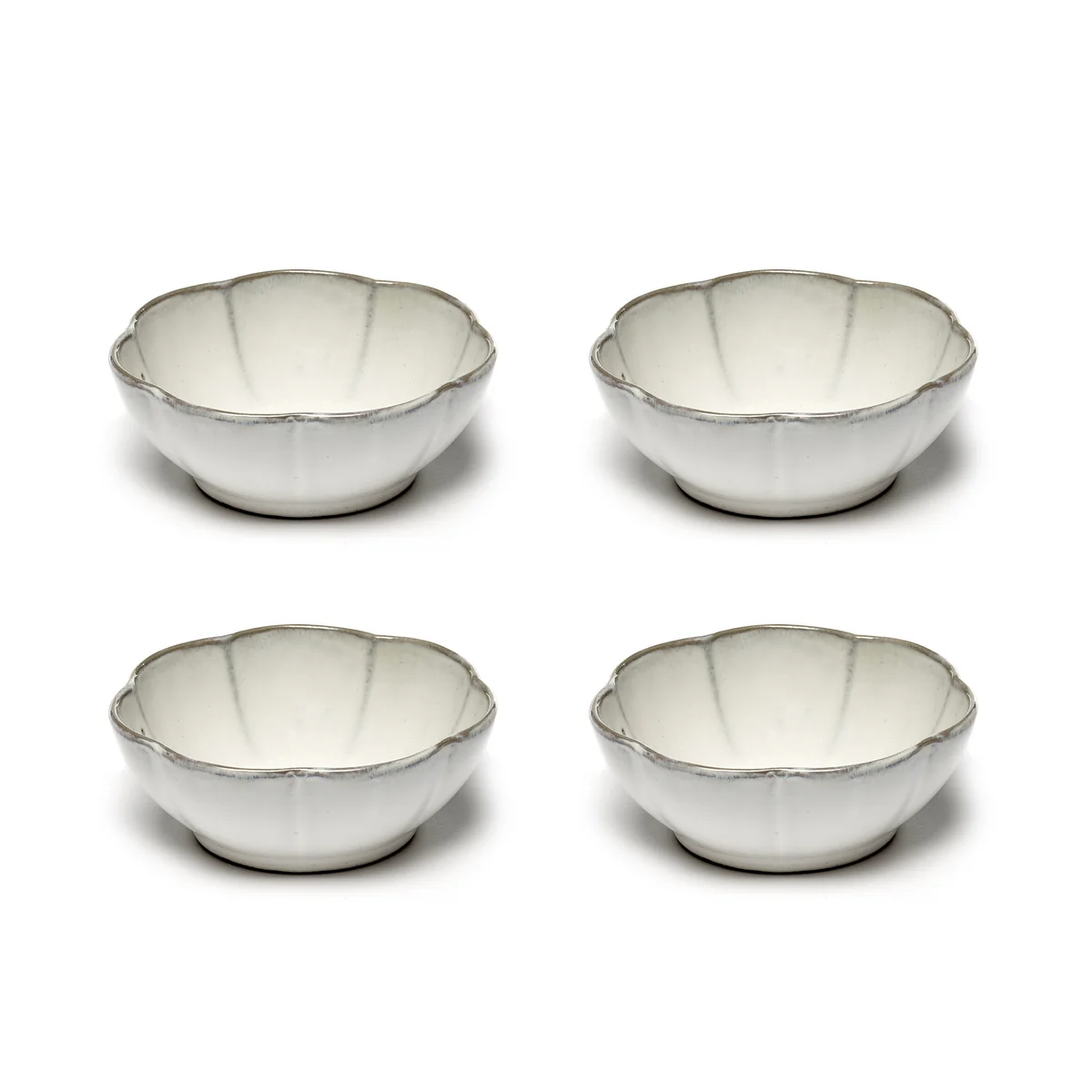 De Inku kommetje van Serax presenteert zich in een Scandinavische look, die wordt gesierd door de bloemvorm van de kommetjes. De kommen zijn verkrijgbaar in een praktische set van 4 en zijn prachtig voor het serveren van kleine bijgerechten of hapjes. De kommen kunnen zowel op de eettafel als op de salontafel gebruikt worden.