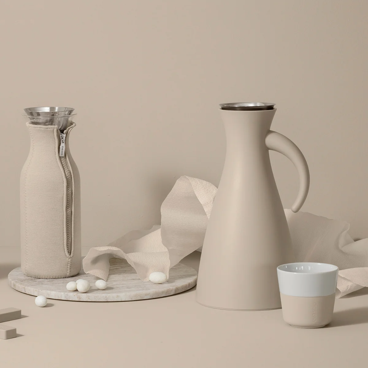 Er is ruimte voor 230 ml koffie in de Caffé Lungo mokken van Tools Design voor Eva Solo , wat precies overeenkomt met de standaardinstellingen op veel gangbare capsule koffiemachines. De koffiemok is gemaakt van porselein en bedekt met een siliconen hoes. Dit zorgt voor een goede grip en voorkomt verbrande vingers.