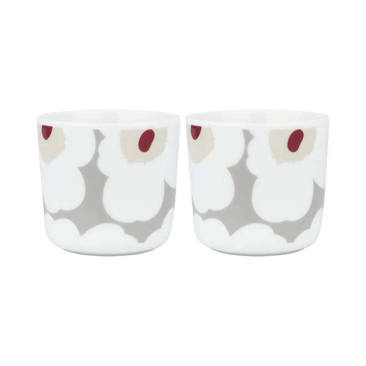 De Oiva Unikko mok zonder handvat van Marimekko is versierd met het beroemde bloemenpatroon van Maija Isola. Unikko, wat "klaproos" betekent in het Duits, is het bekendste en meest verspreide patroon van de traditionele Finse fabrikant Marimekko .