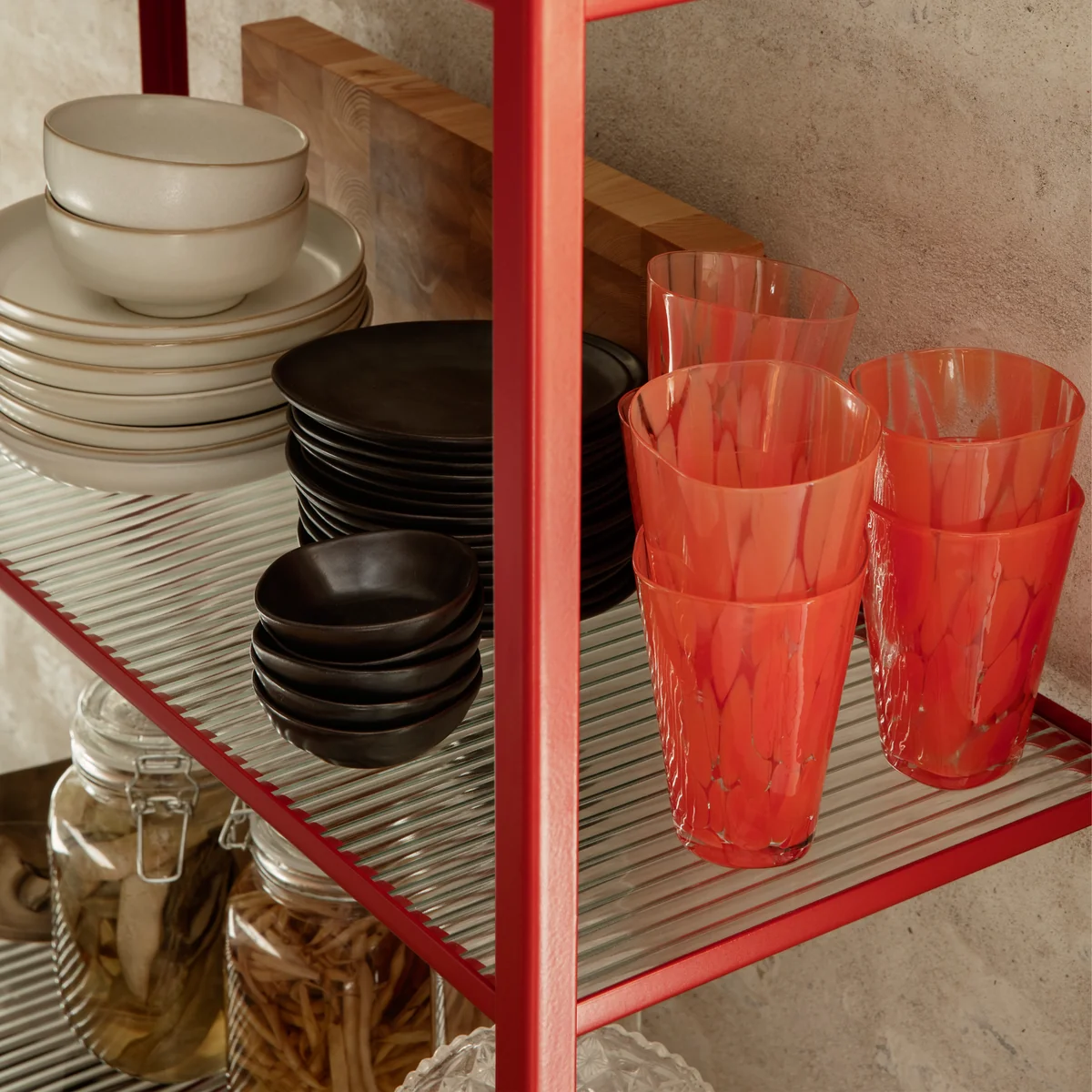 De Casca Glas van Ferm Living is een glas dat op alle niveaus inspireert: met zijn speelse, looppatronen is het een echte blikvanger op elke eettafel. De asymmetrische vorm maakt het organisch en comfortabel om vast te houden en het materiaal is ook uniek: de Casca Glas bestaat uit mondgeblazen glas. Dus elk stuk is uniek! Capaciteit: 270ml.