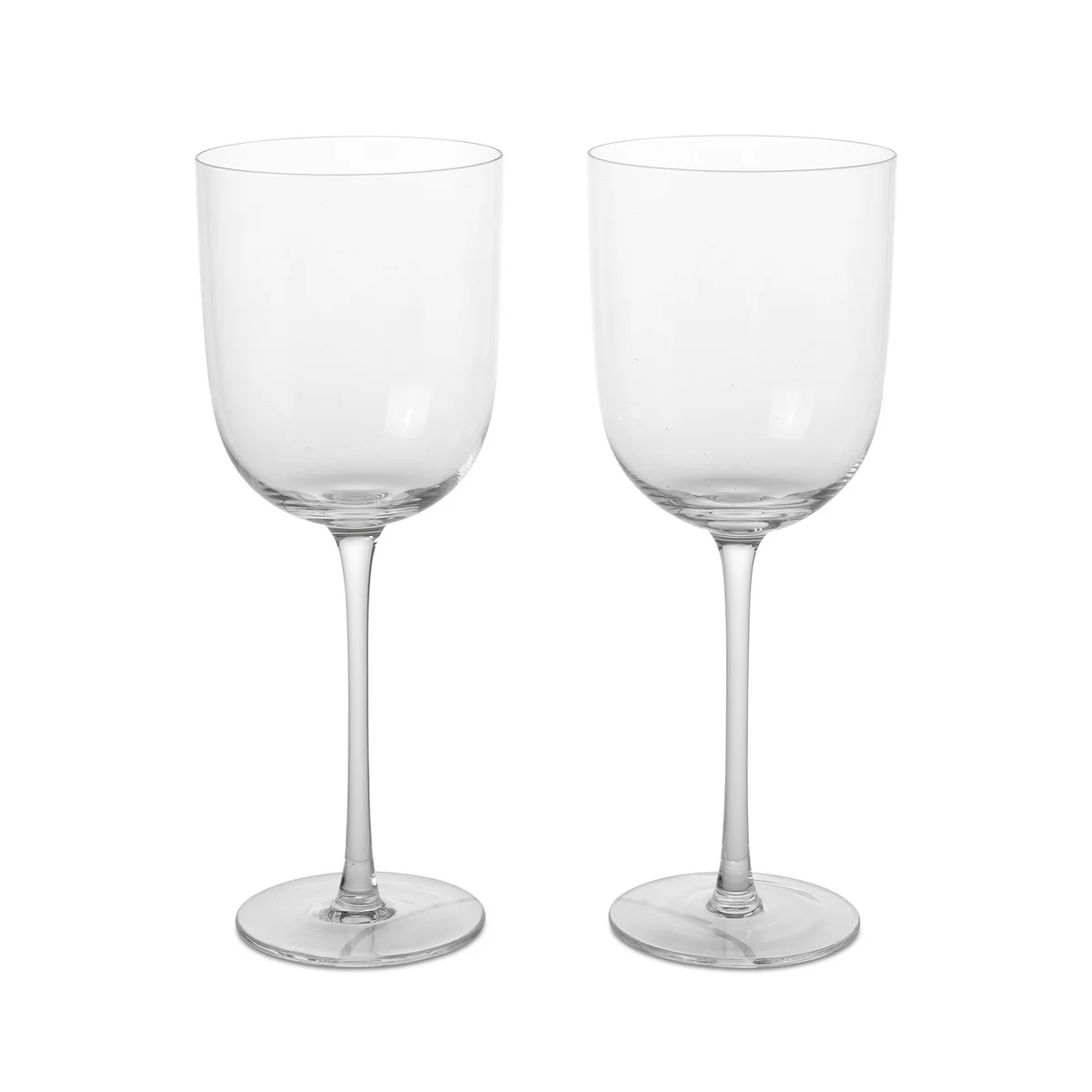De Host wijnglazen van het huis Ferm Living inspireren met hun heldere silhouetten en delicate stelen. De set van 2 (rood of wit wijnglas) van mondgeblazen glas decoreert elke tafel in een handomdraai dankzij hun klassieke elegantie.