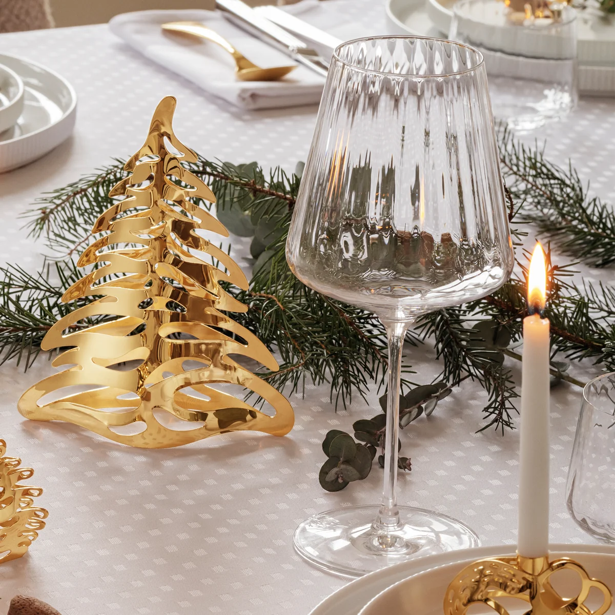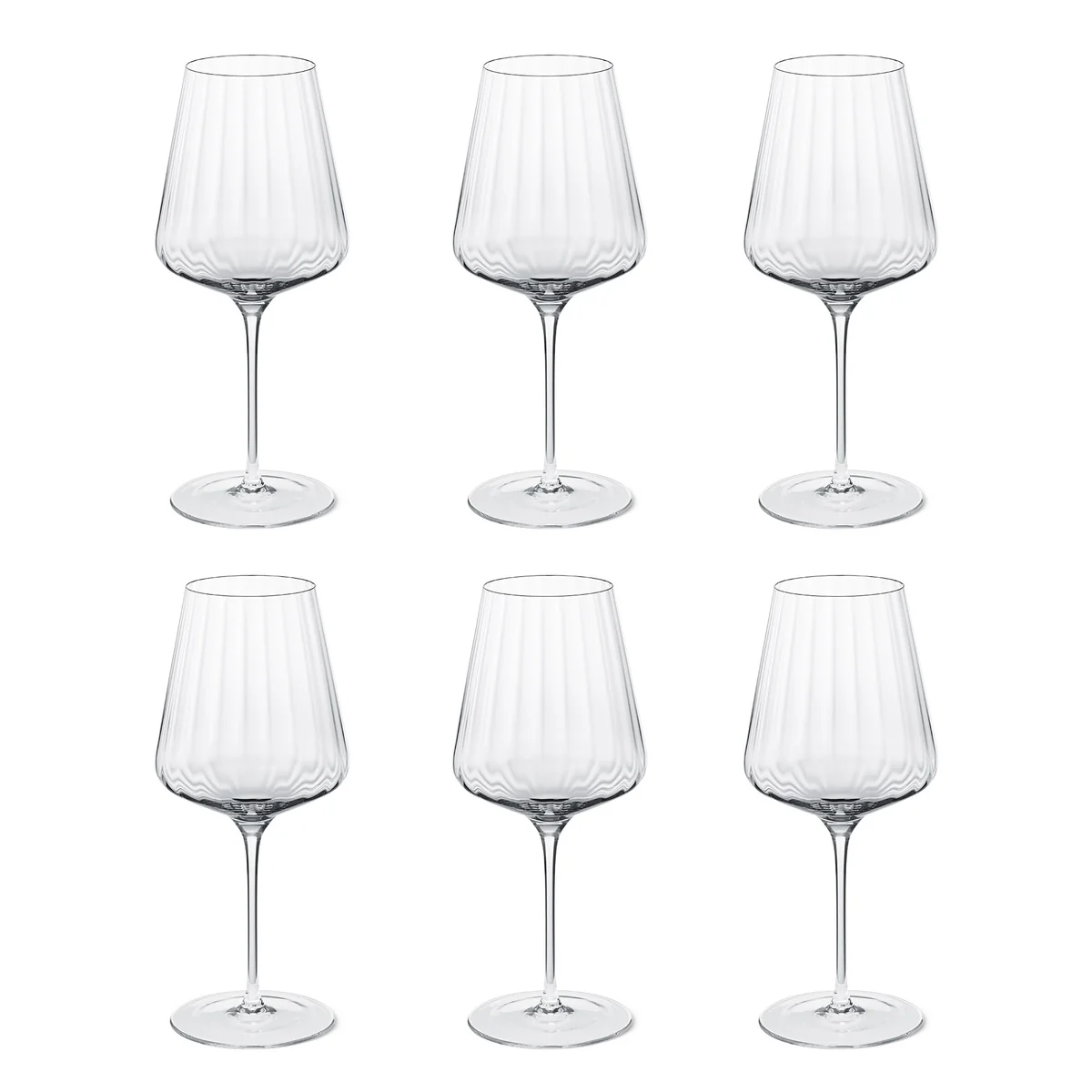 Het Bernadotte rode wijnglas van Georg Jensen is een modern wijnglas gemaakt van loodvrij kristal. Het glas maakt indruk met zijn groeven in art-decostijl, die het genieten van wijn nog exclusiever maken. Dankzij de visuele voordelen van de groeven ligt het rode wijnglas goed in de hand, zelfs als de wijn gekoeld is. De Bernadotte glazen (450 ml) zijn verkrijgbaar in een set van 6.