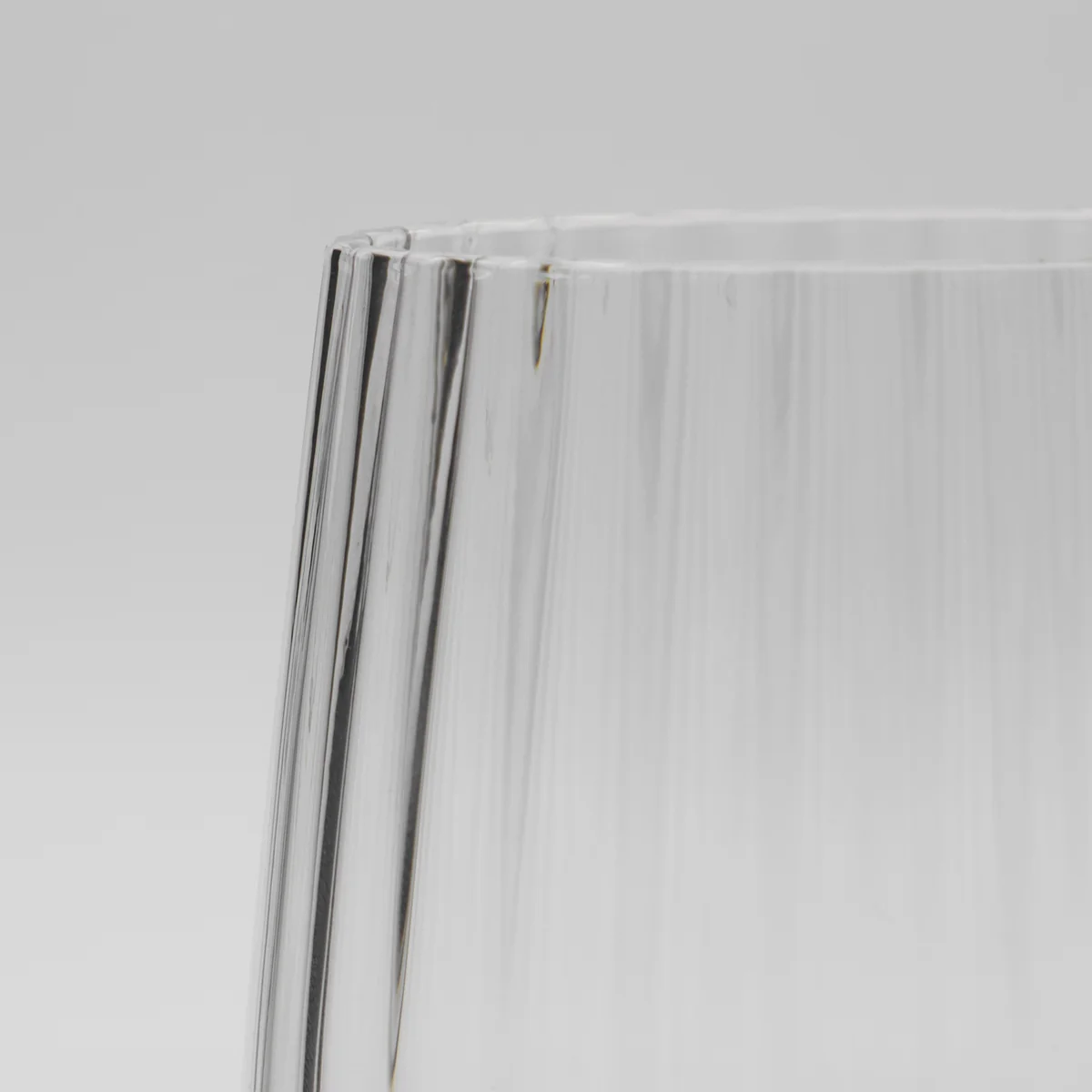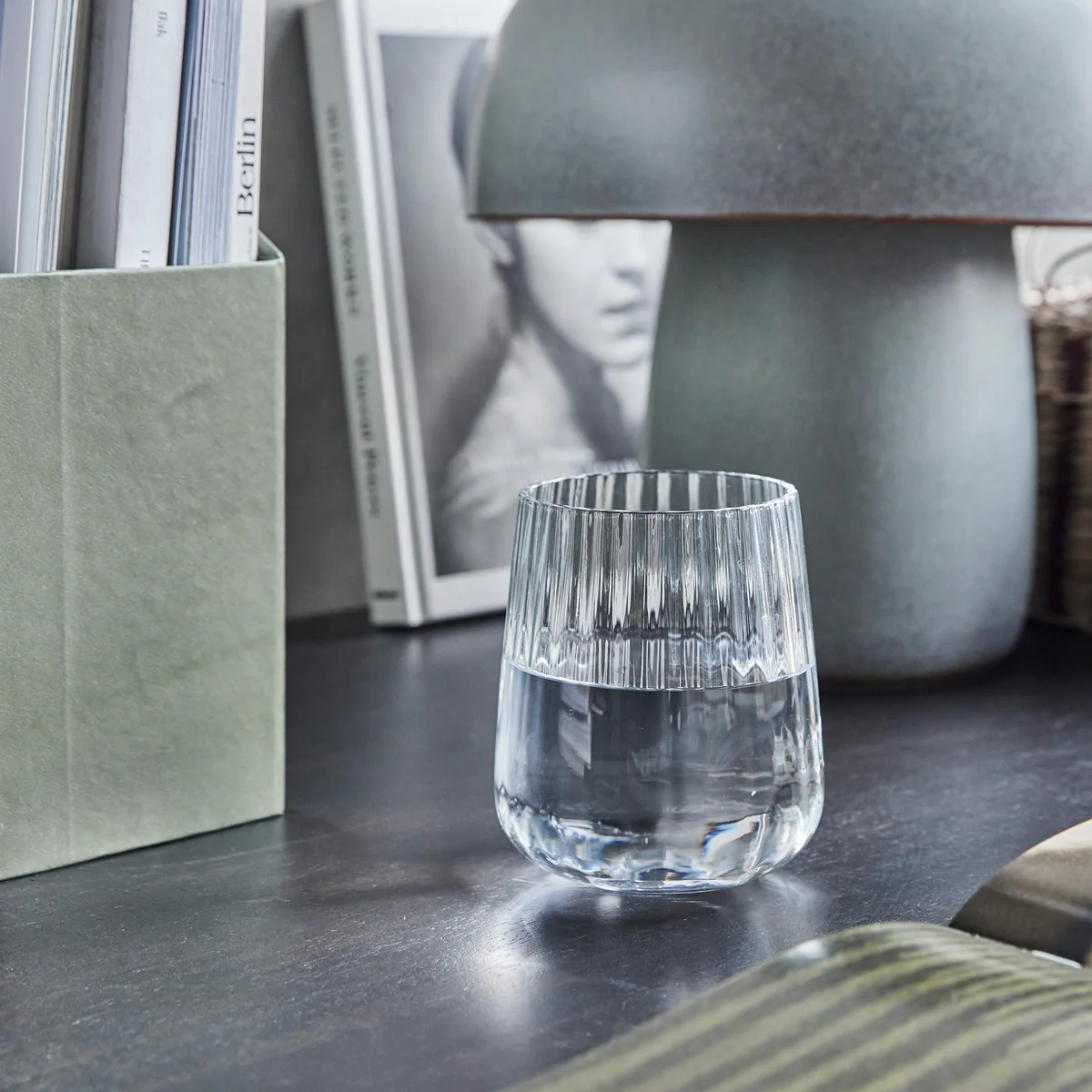 De vorm van het Rill drinkglas is ontworpen om comfortabel in de hand te liggen en de drank optimaal tot zijn recht te laten komen. De geraffineerde groeven op het glas geven het niet alleen een aantrekkelijke structuur, maar verbeteren ook de grip.