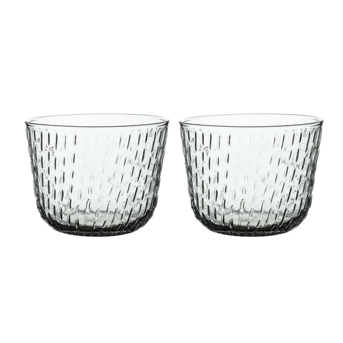 Het Syksy drinkglas van Marimekko is gemaakt van mondgeblazen glas. De serie Syksy (Autumn) glass series, ontworpen door Matti Klenell, gaat verder met de verkenning van de natuur en weersverschijnselen die bekend zijn uit de drukkunst Marimekko . Het overkoepelende thema van de nieuwe serie is de vormen van herfstregen, van een zachte motregen tot krachtige, doordringende buien.