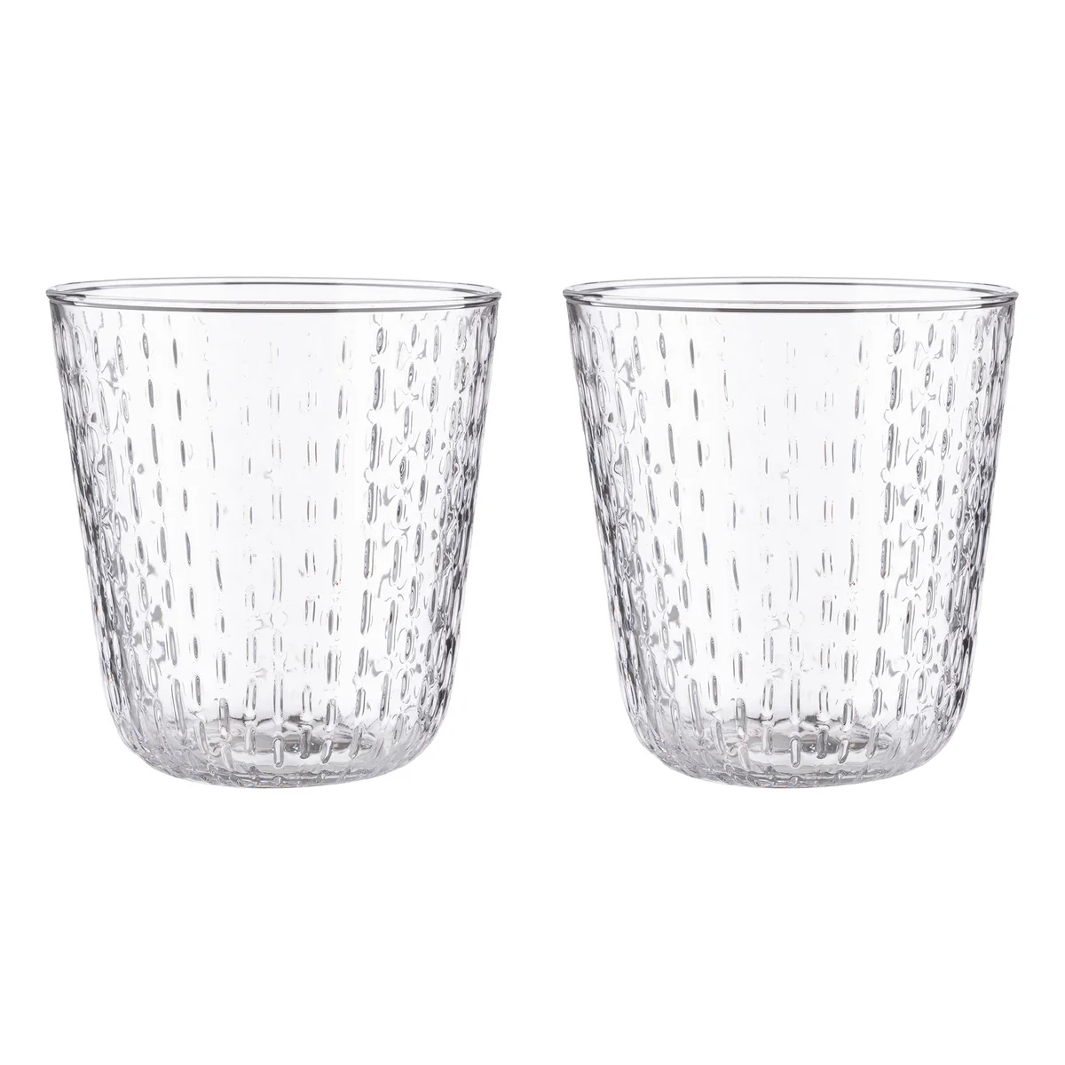 Het Syksy drinkglas van Marimekko is gemaakt van mondgeblazen glas. De serie Syksy (Autumn) glass series, ontworpen door Matti Klenell, gaat verder met de verkenning van de natuur en weersverschijnselen die bekend zijn uit de drukkunst Marimekko . Het overkoepelende thema van de nieuwe serie is de vormen van herfstregen, van een zachte motregen tot krachtige, doordringende buien.