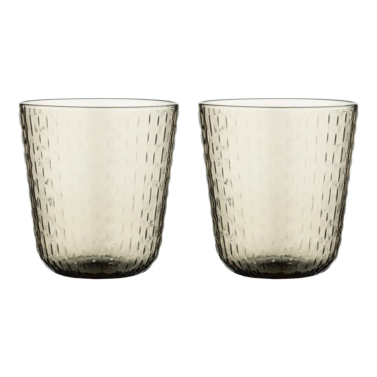 Het Syksy drinkglas van Marimekko is gemaakt van mondgeblazen glas. De serie Syksy (Autumn) glass series, ontworpen door Matti Klenell, gaat verder met de verkenning van de natuur en weersverschijnselen die bekend zijn uit de drukkunst Marimekko . Het overkoepelende thema van de nieuwe serie is de vormen van herfstregen, van een zachte motregen tot krachtige, doordringende buien.