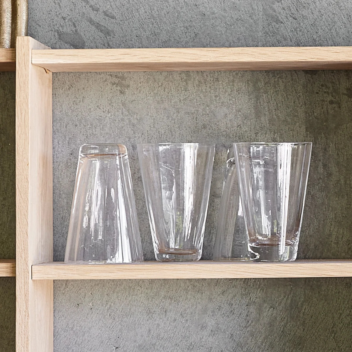Het Yuka Groove drinkglas is gemaakt van hoogwaardig glas dat wordt gewaardeerd om zijn helderheid en duurzaamheid. Het bevat geen schadelijke stoffen en is daarom perfect om drankjes uit te drinken. Het drinkglas wordt gekenmerkt door zijn unieke gegroefde ontwerp, dat niet alleen een interessante textuur biedt, maar ook een stevige grip. De heldere lijnen en eenvoudige elegantie van het glas passen bij verschillende tafeldecoraties en inrichtingsstijlen.