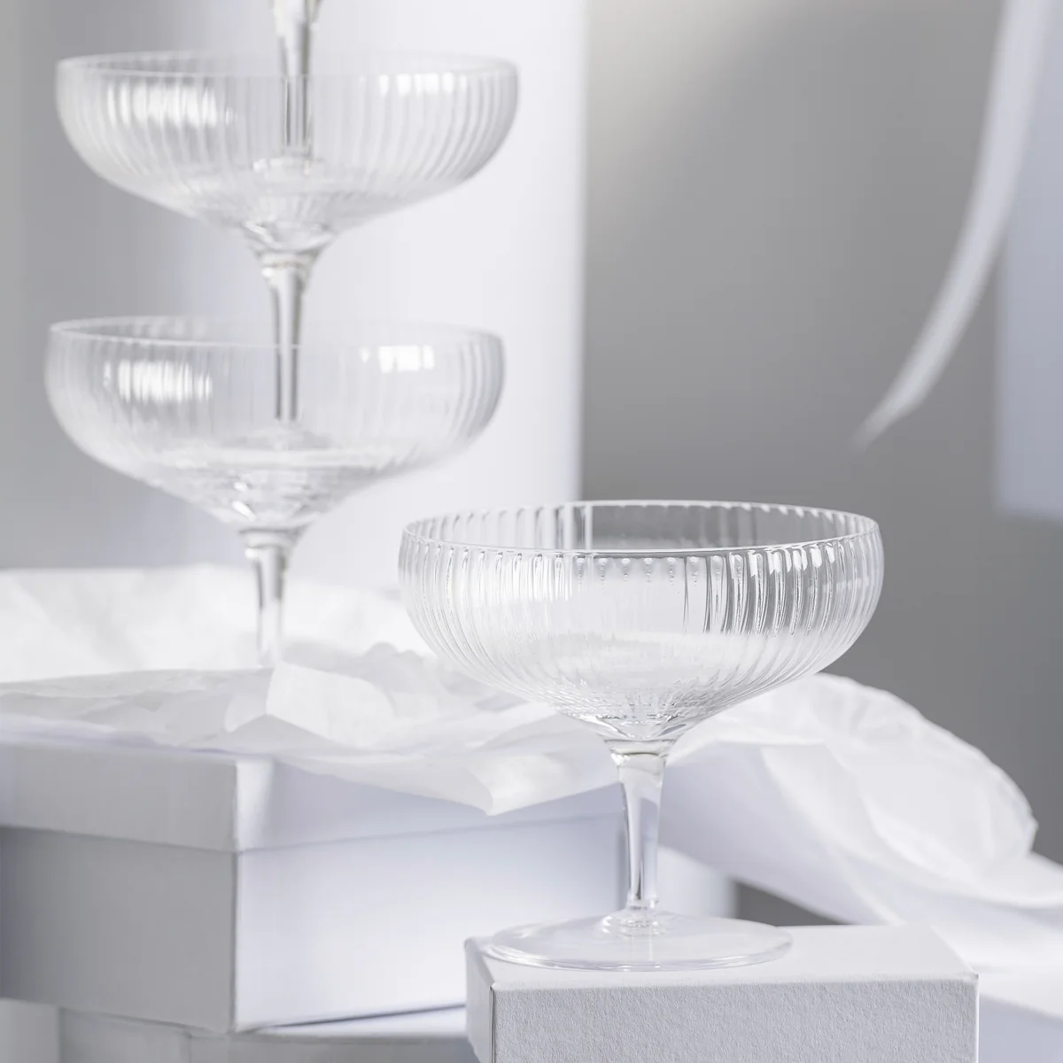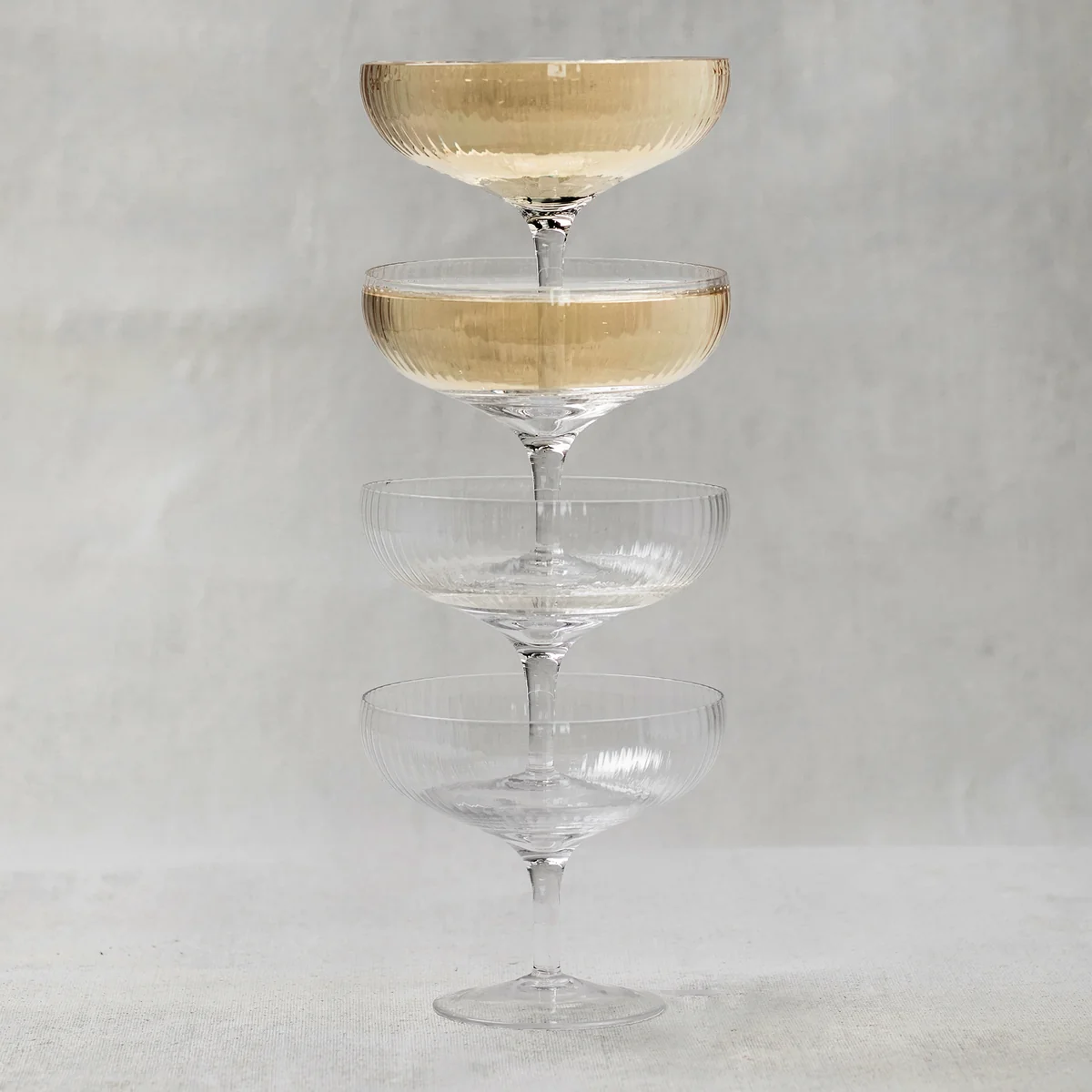 De champagneglazen van Serax zijn een stijlvol en charmant alternatief voor traditionele champagneglazen. Het brede en ronde, platte ontwerp voegt een modern en elegant tintje toe aan de champagne-ervaring - perfect om op te proosten bij speciale gelegenheden. De champagneglazen zijn verkrijgbaar in sets van 4 en zijn geweldig om cadeau te geven.