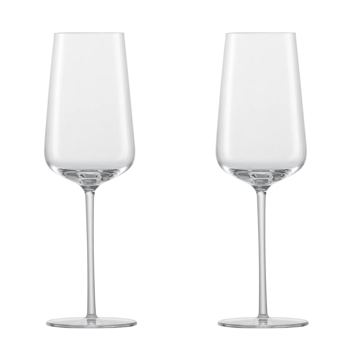 De Vervino Champagneglazen van de fabrikant Zwiesel Glas zijn - zoals de naam al doet vermoeden - ideaal voor de ontwikkeling van koolzuurhoudende dranken. Door het moussepunt op de bodem van het glas kunnen de bubbels van de drank optimaal tintelen en kunnen de aroma's van champagne, mousserende wijn en prosecco zich heerlijk ontwikkelen.