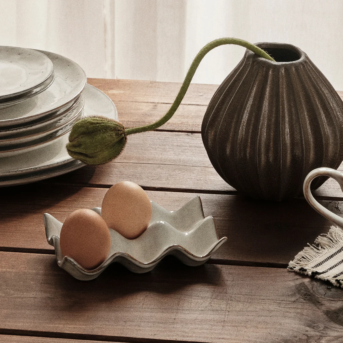 Broste Copenhagen Het Nordic Sand eierplateau van is een prachtige manier om de eetervaring te verbeteren. Dit prachtige stuk van reactief geglazuurd steengoed van hoge kwaliteit heeft een zachtbeige kleur die rust uitstraalt. Het unieke oppervlak zorgt ervoor dat elk dienblad zijn eigen patroon en karakter heeft.