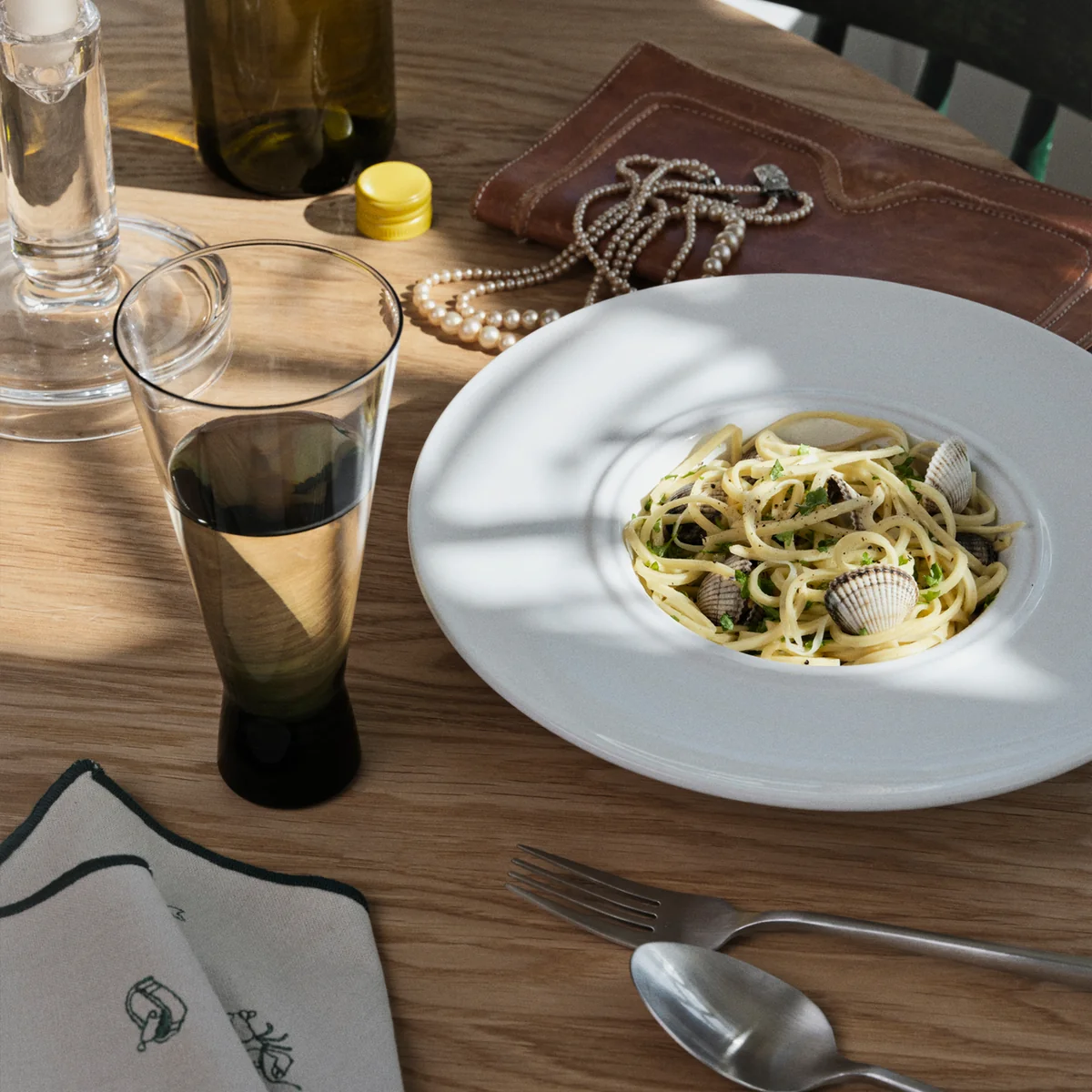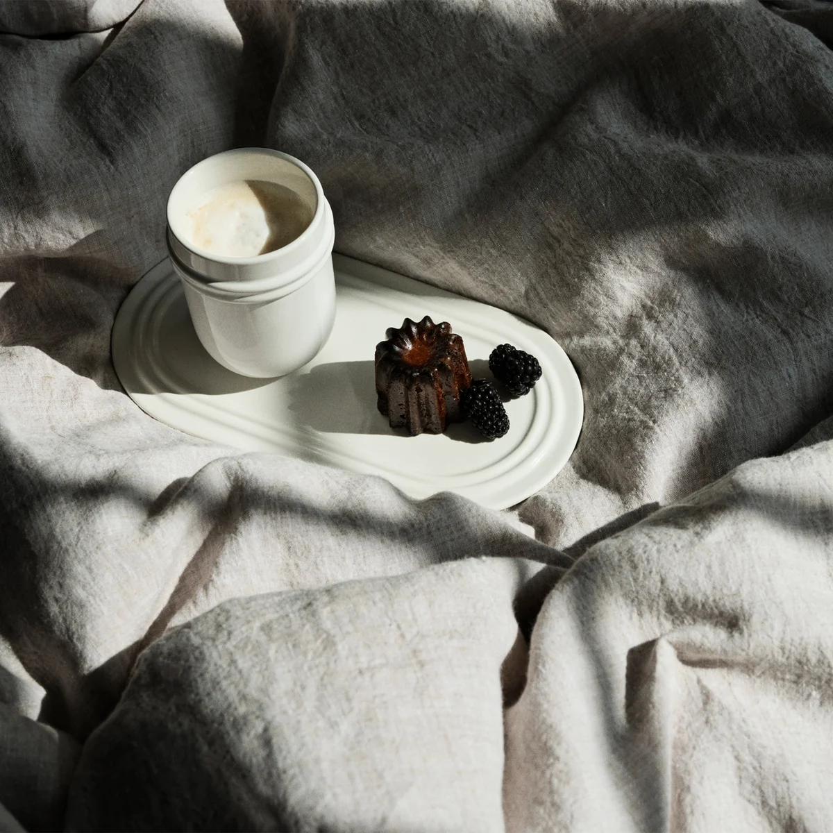De collectie, gemaakt van wit steengoed en afgewerkt met het glazuur "Chalk White", voegt een uitnodigend accent toe aan de tafel. De Deense keramiste Julie Bonde ontwierp deze serie, die de borden vakkundig omlijst met de twee kenmerkende ringen.