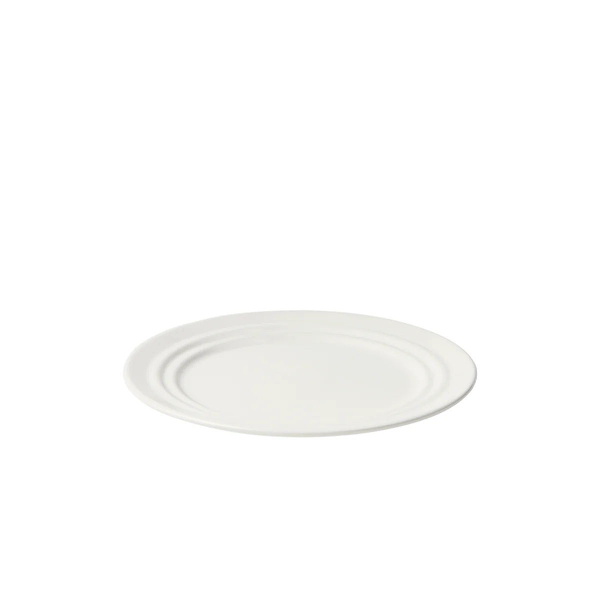 De collectie, gemaakt van wit steengoed en afgewerkt met het glazuur "Chalk White", voegt een uitnodigend accent toe aan de tafel. De Deense keramiste Julie Bonde ontwierp deze serie, die de borden vakkundig omlijst met de twee kenmerkende ringen.