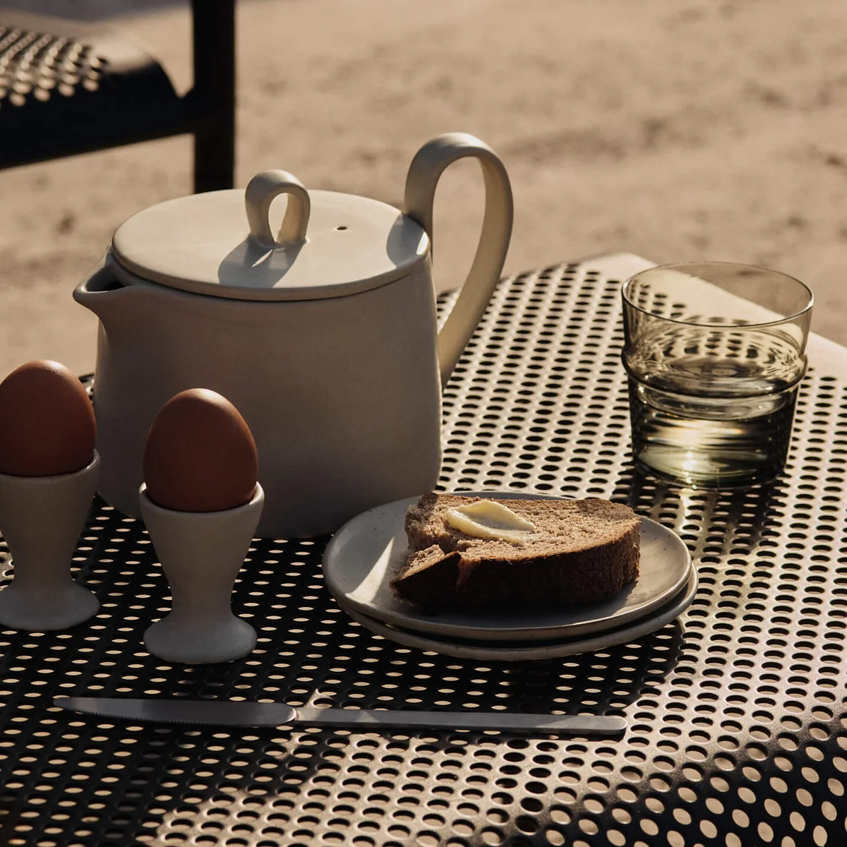 De Flow eierdopjes van Ferm Living brengen de filosofie van de gelijknamige serie naar de ontbijttafel: onregelmatig, vol karakter en met een moderne twist. Elk stuk wordt gekenmerkt door een organische designtaal en een fijn gestructureerde afwerking met een halfmatte glans. Het sculpturale ontwerp geeft het functionele object een speciale aanwezigheid - een rustige metgezel voor gezellige ochtenden met een handgemaakte expressie.