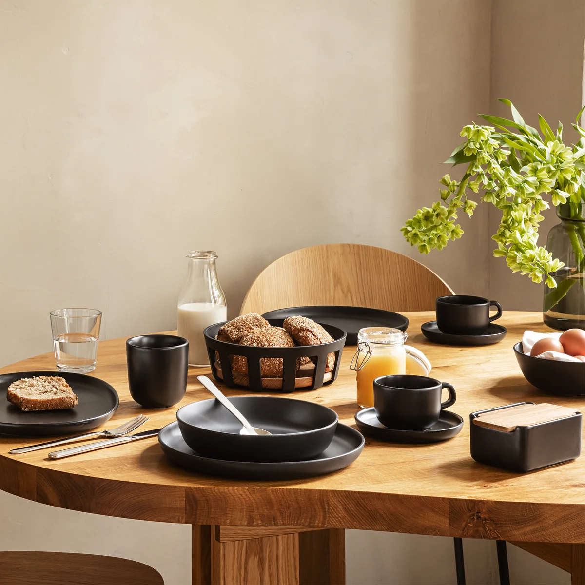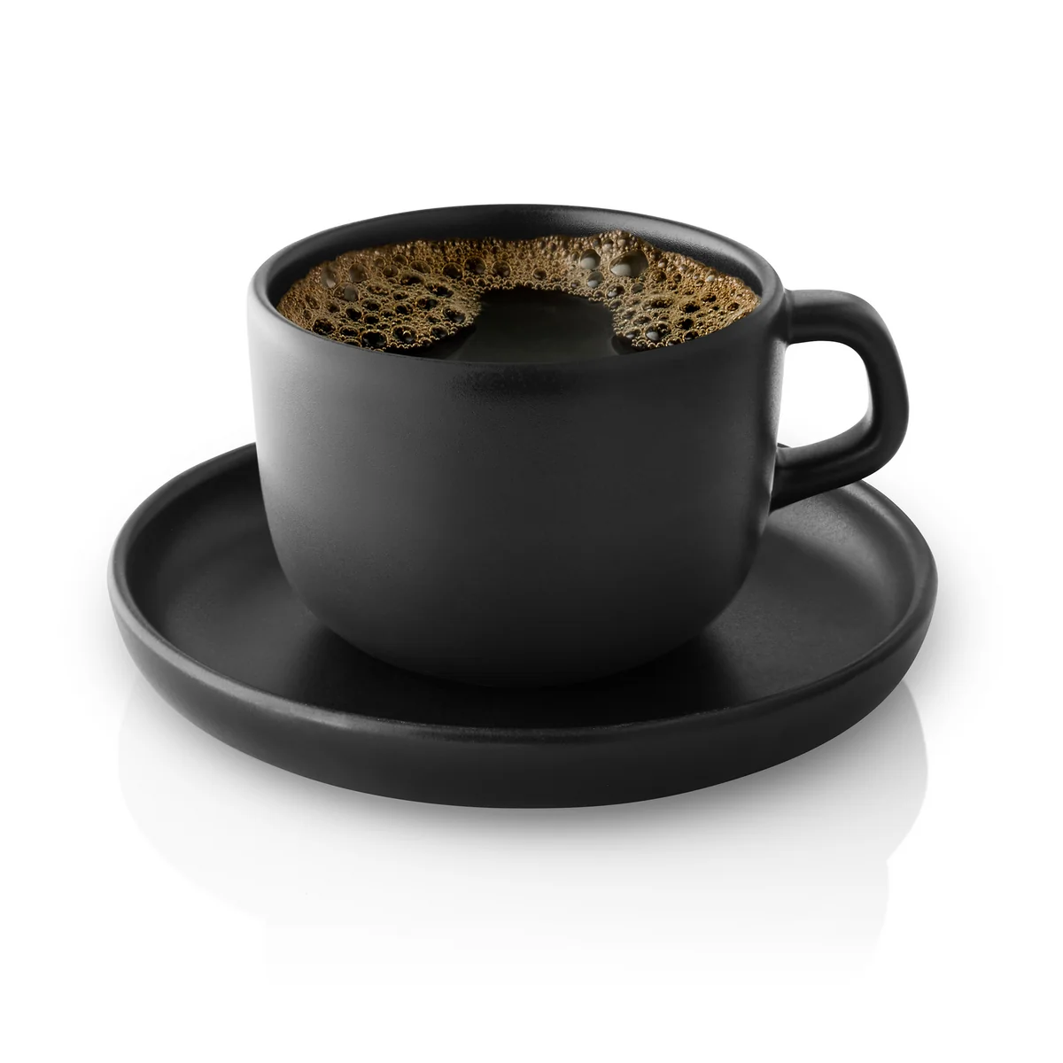 De kop en schotel van de Nordic Kitchen -serie van Eva Solo heeft een opvallende en in het oog springende landhuischarme die het Scandinavische tintje van de serie uitstraalt. De kop en schotel zijn gemaakt van hoogwaardig steengoed en hebben een mooie matte look die perfect past bij de tafelschikking. Niet alleen koffie, maar ook thee, melk, cacao of andere warme dranken kunnen uit de moderne kopjes worden genuttigd. Zij kunnen worden gecombineerd met andere producten van de Nordic Kitchen serie.